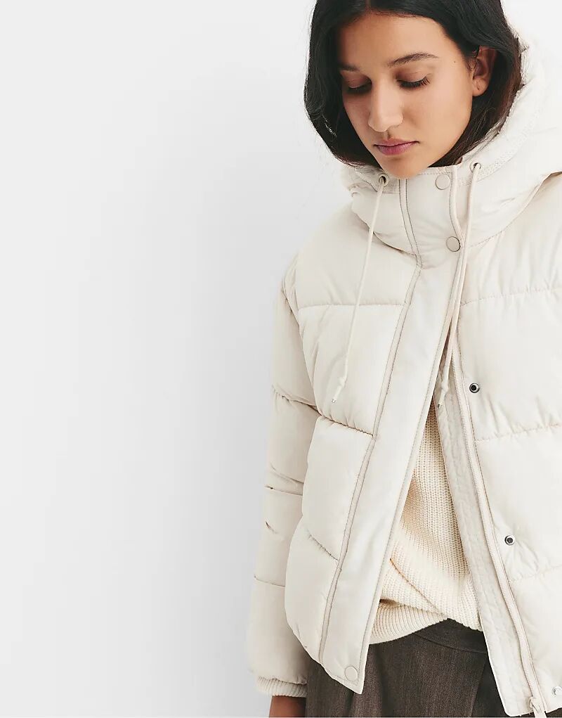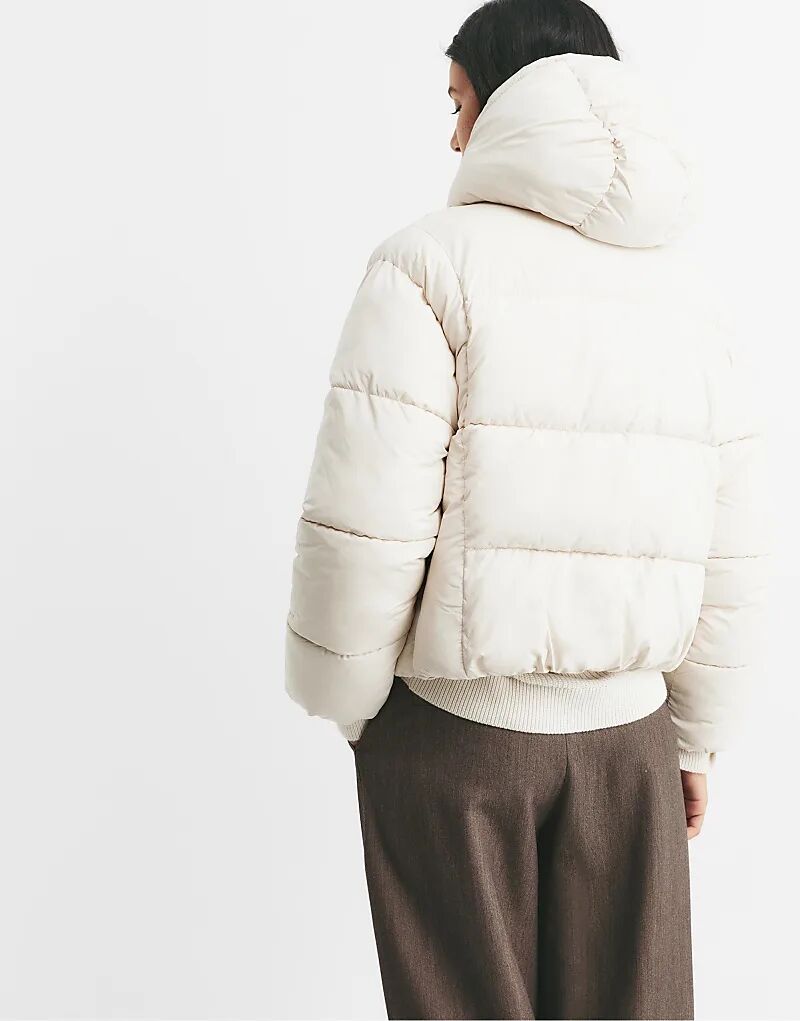 Короткая стеганая куртка Pull&Bear бежевого цвета с капюшоном