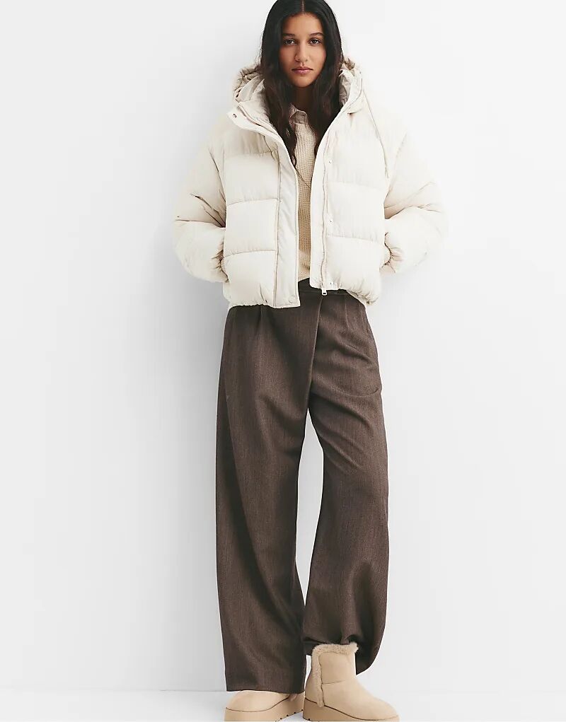 Короткая стеганая куртка Pull&Bear бежевого цвета с капюшоном 8 647₽