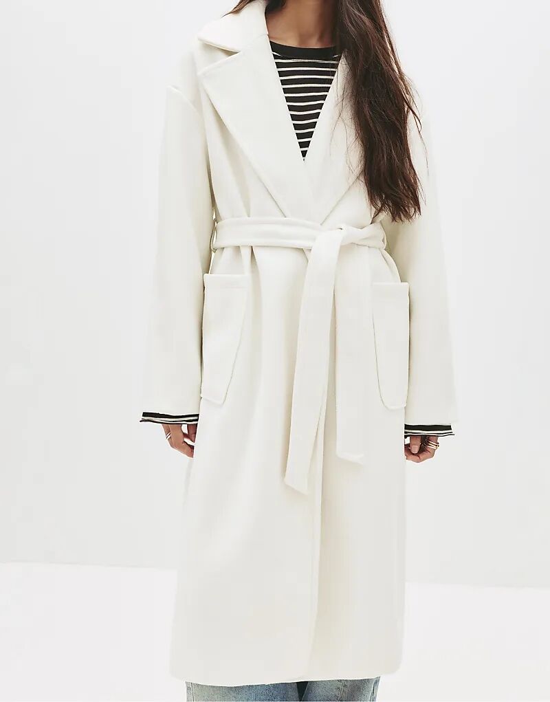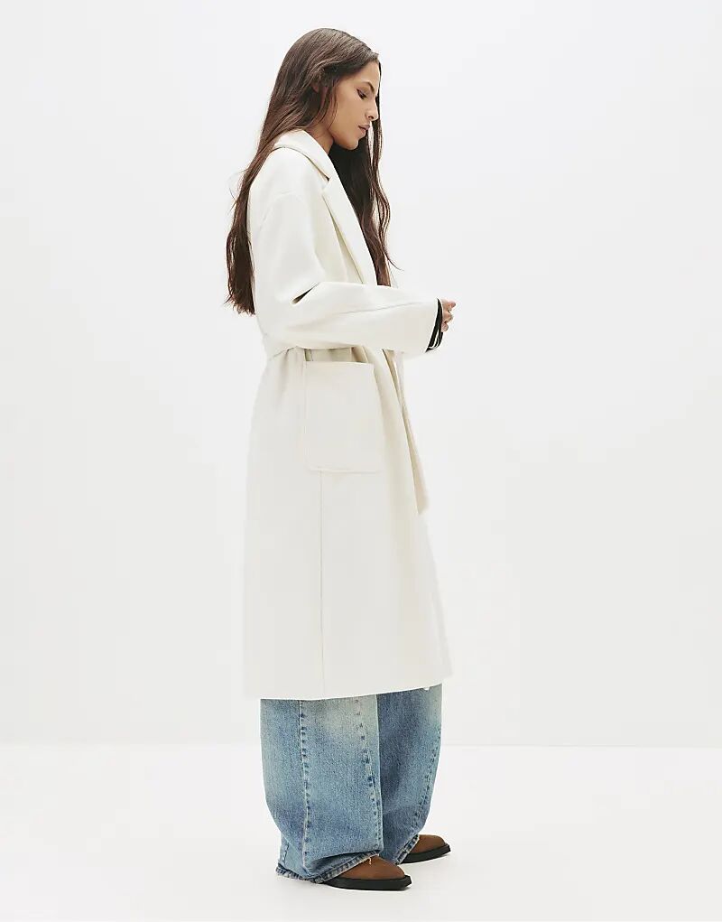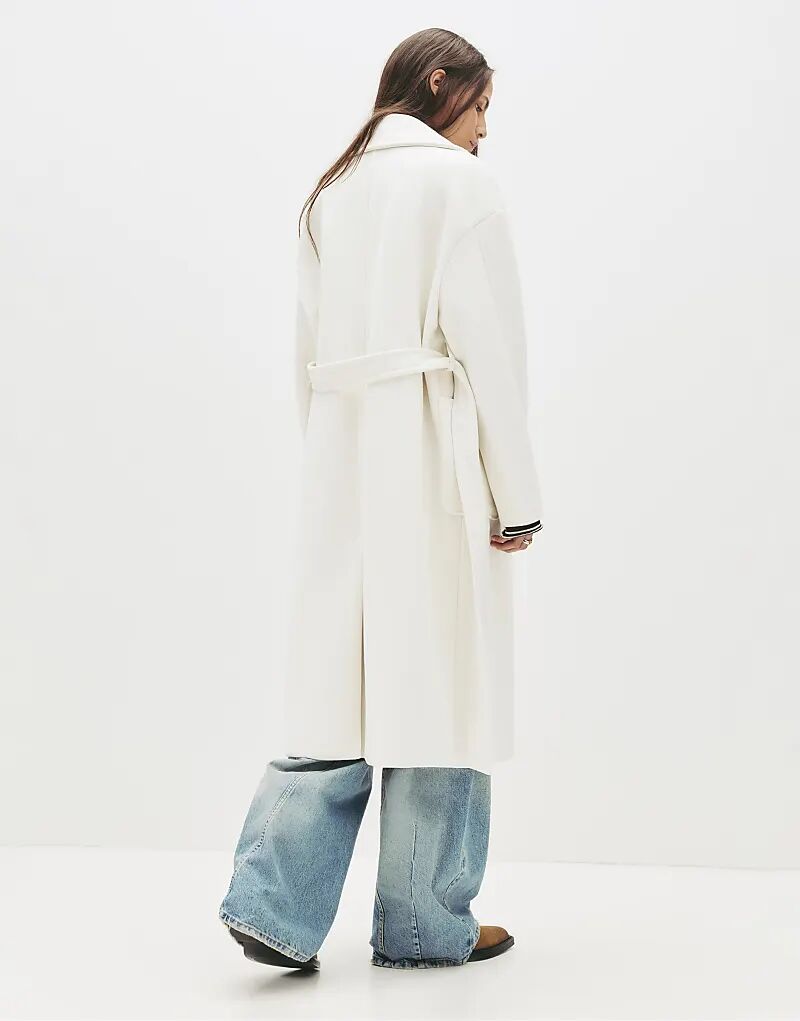 Длинное пальто с поясом Pull&Bear бежевого цвета 7 802₽