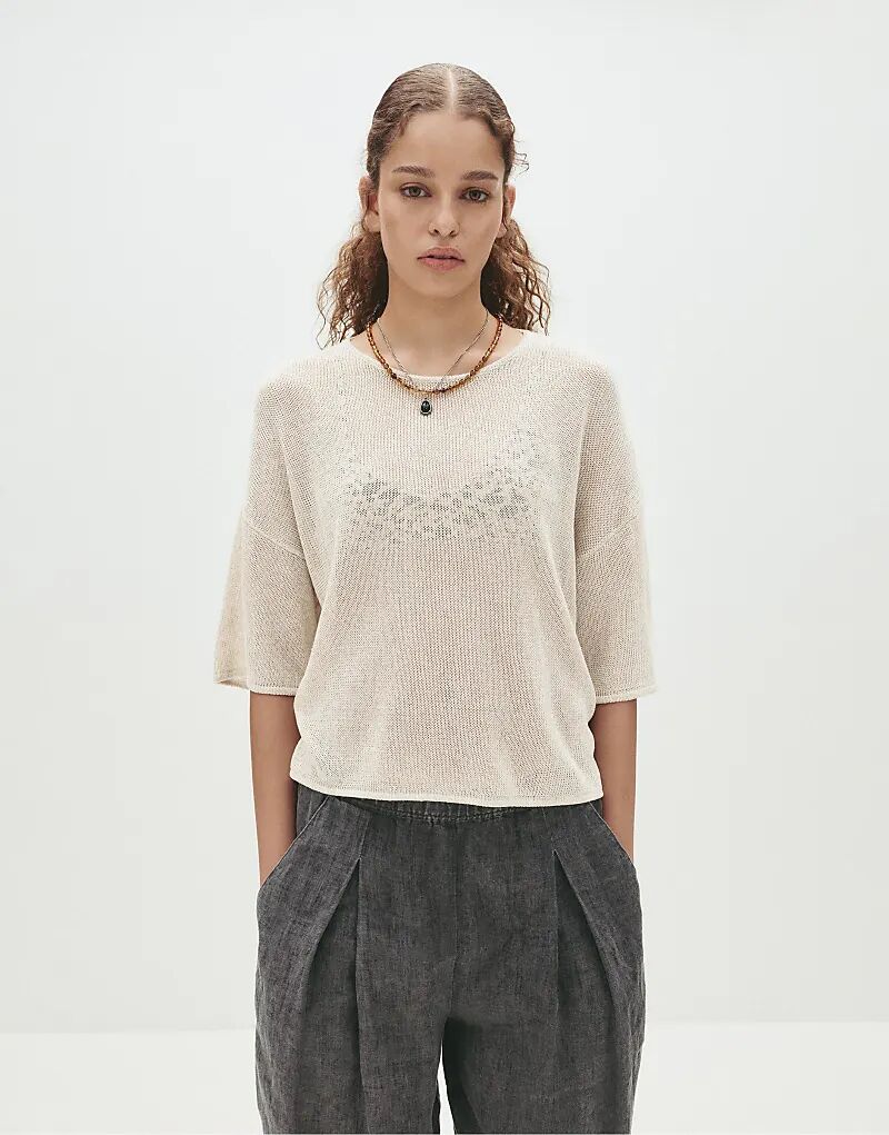 Свитер с короткими рукавами Pull&Bear бежевого цвета