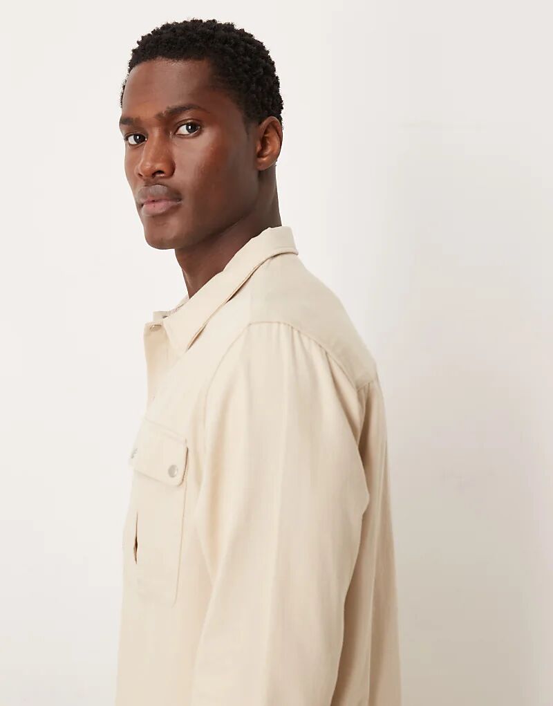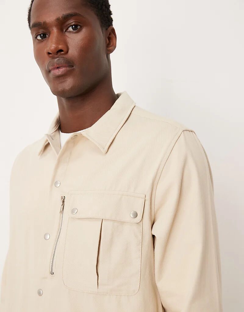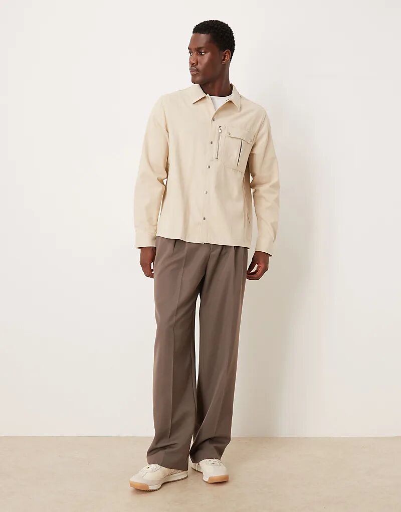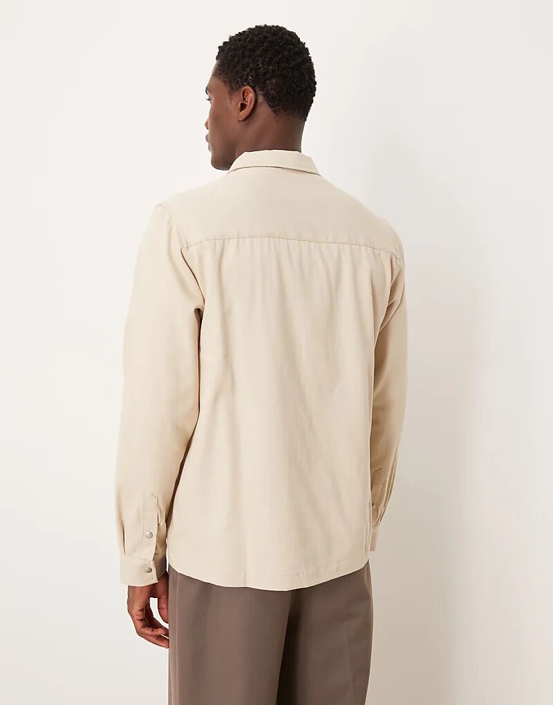 Холщовая рубашка ASOS DESIGN с карманом в цвете «камень»