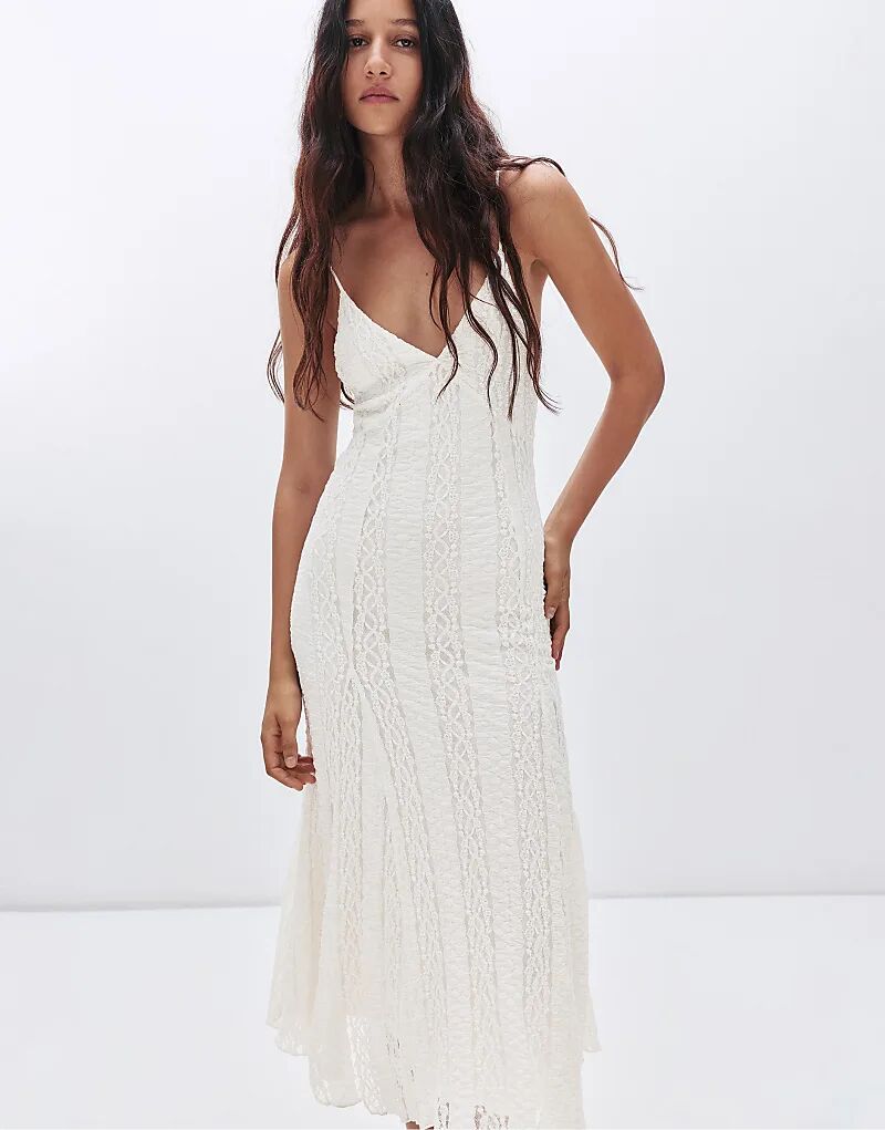 Платье миди на бретелях Pull&Bear Lace бежевого цвета