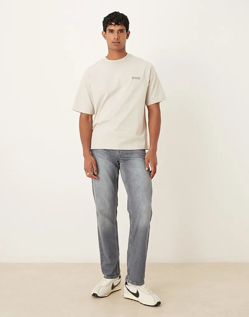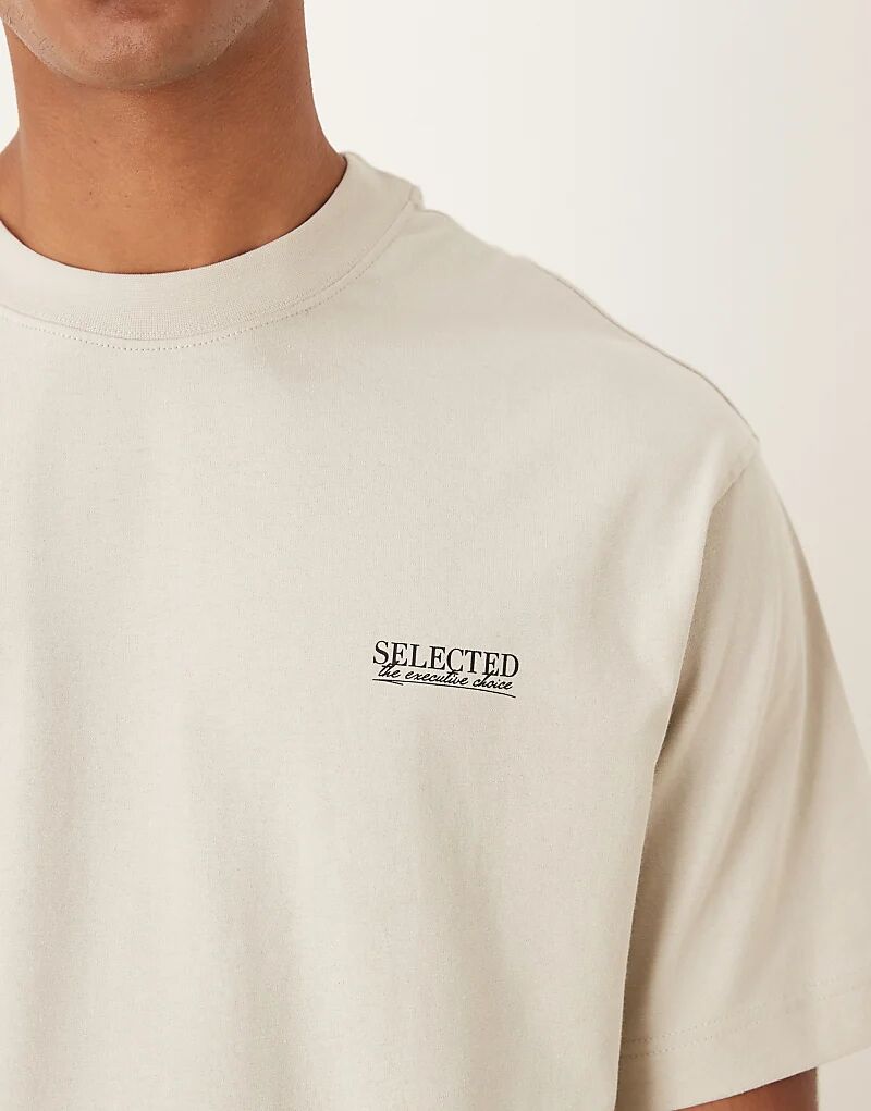 Футболка Selected oversize с логотипом бежевого цвета