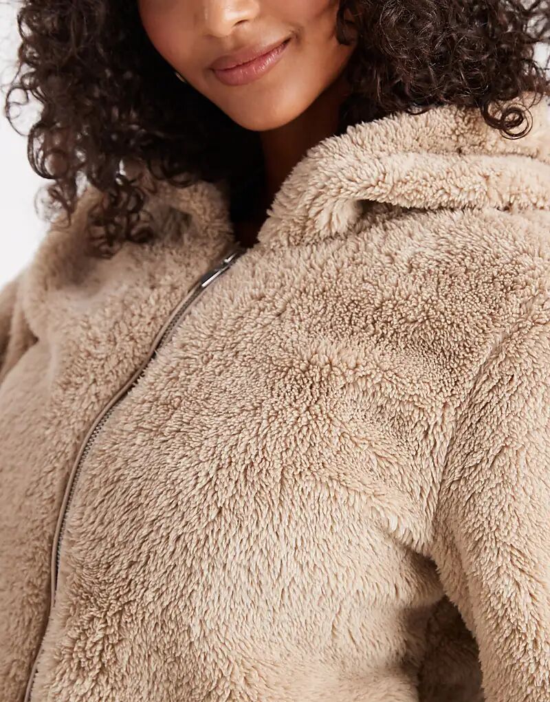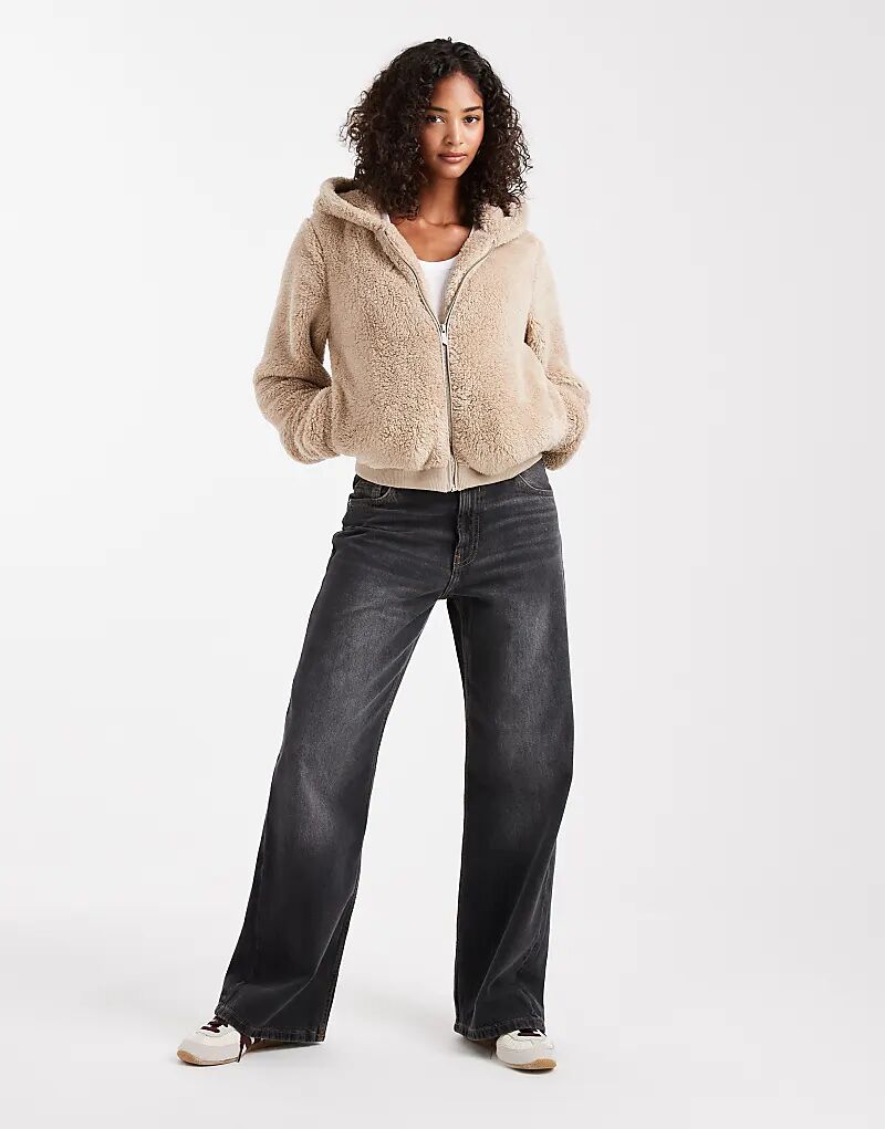 ONLY плюшевая куртка с капюшоном бежевого цвета