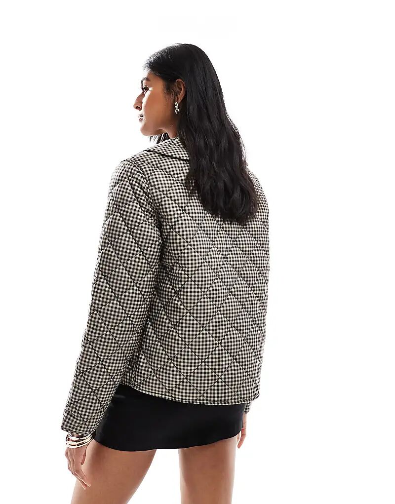 ONLY стеганая куртка с воротником в бежевую клетку