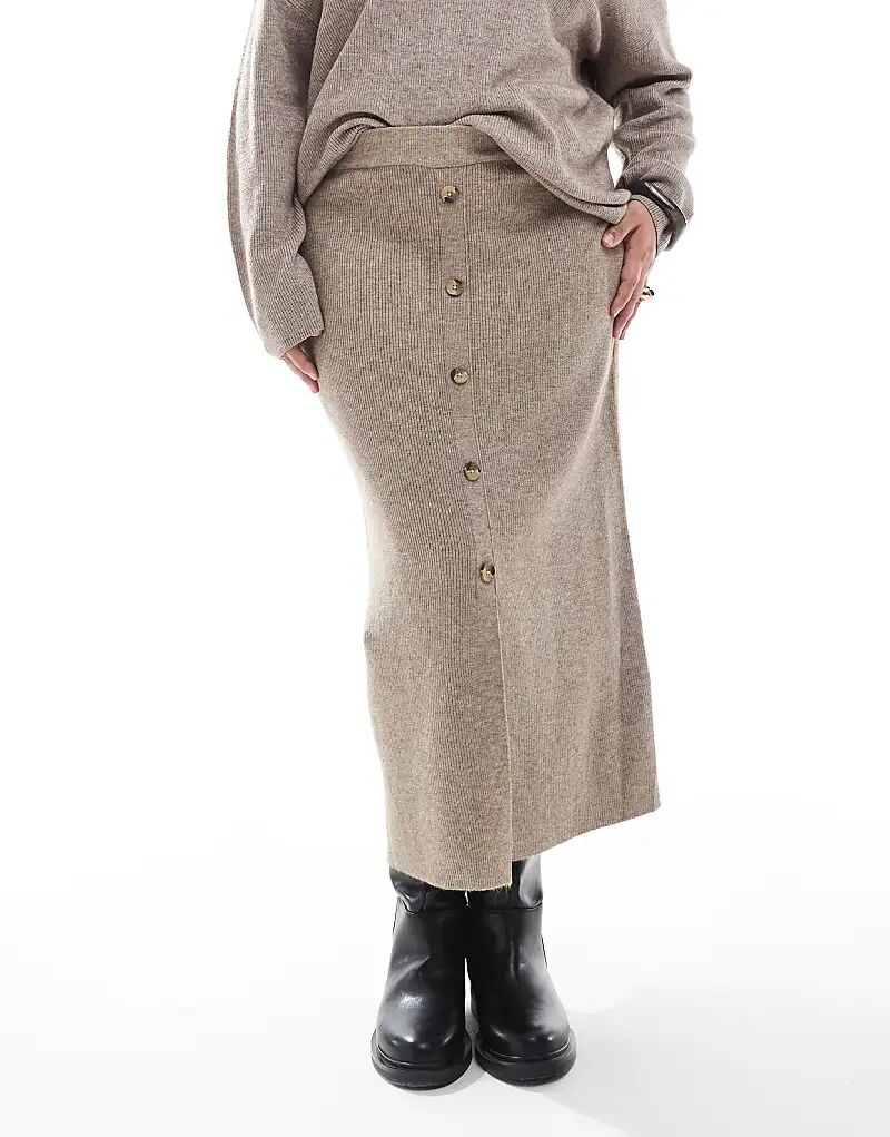 Юбка миди ONLY Curve в рубчик бежевого цвета