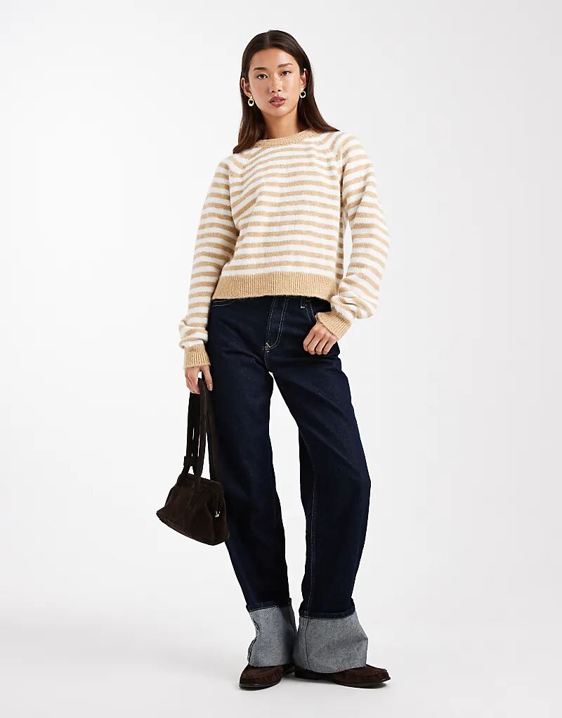 Пушистый джемпер ASOS DESIGN в бежево-белую полоску 4 095₽