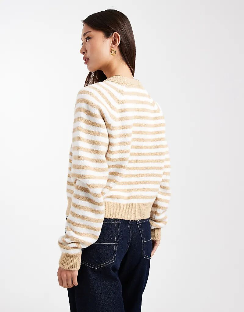 Пушистый джемпер ASOS DESIGN в бежево-белую полоску