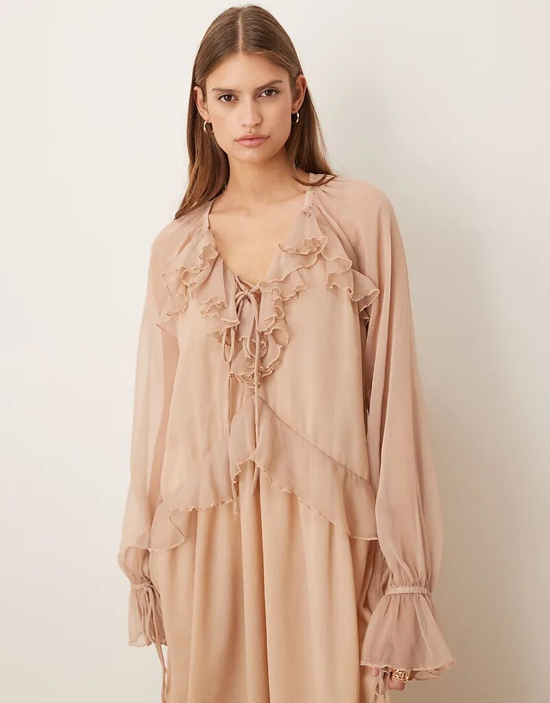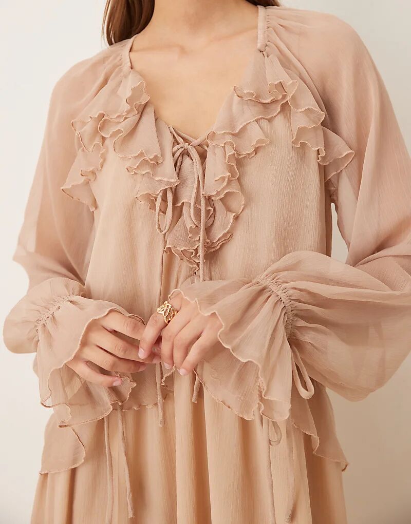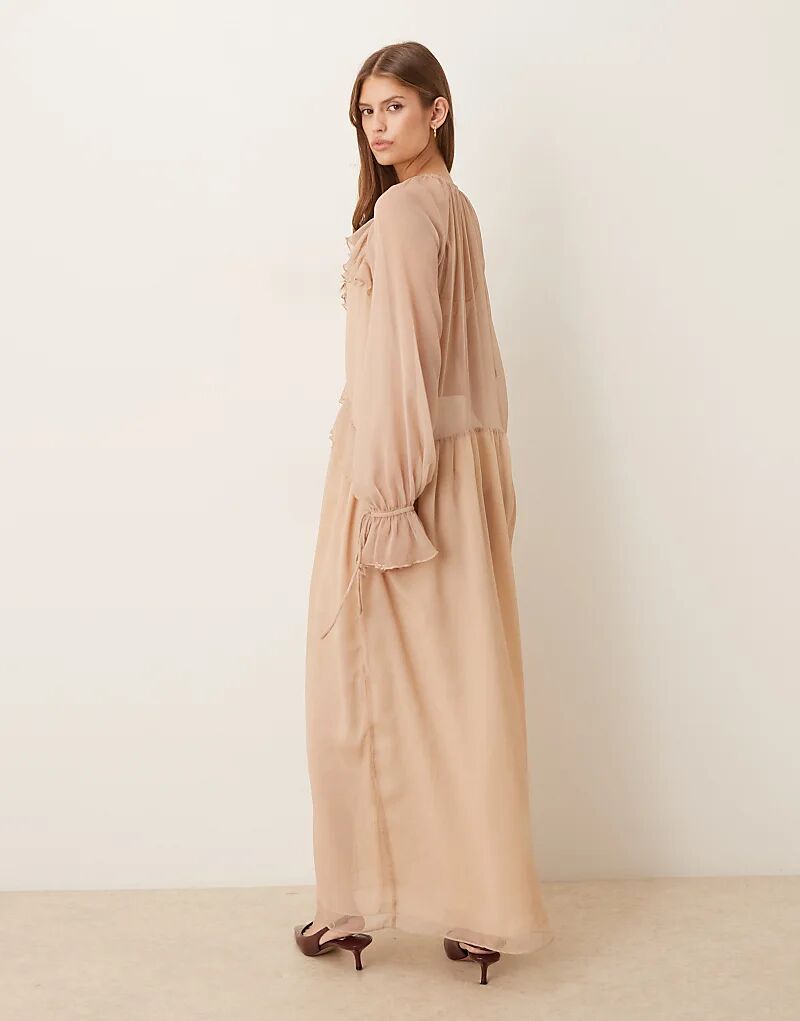 Glamorous макси-платье с оборками из бежевой жатой ткани