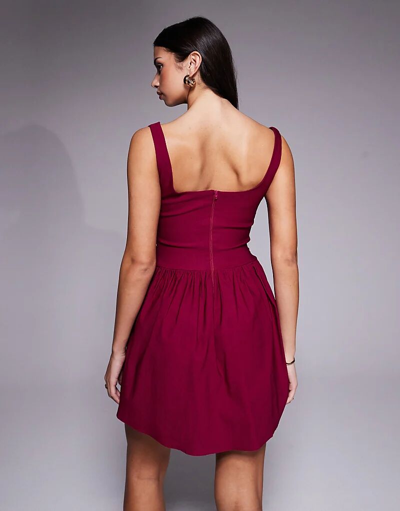 Платье-мини Vesper bengaline с квадратным вырезом ягодного цвета