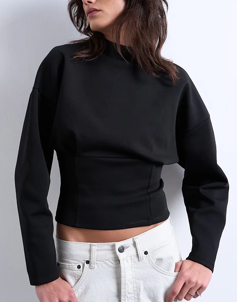 Лонгслив-корсет Topshop Interlock с длинными рукавами, черный