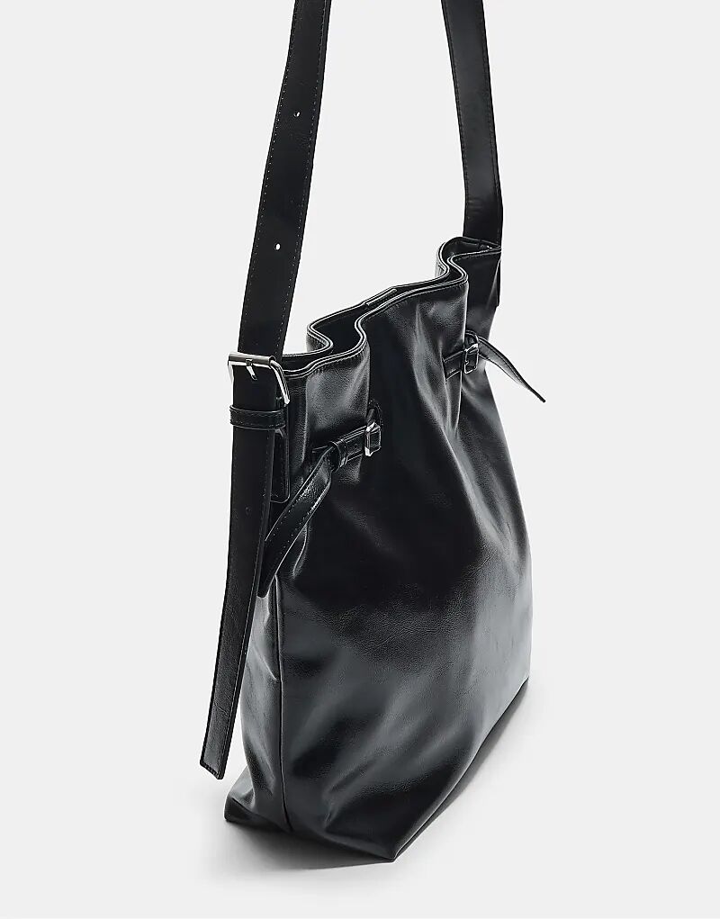 Сумка Stradivarius через плечо с пряжкой черного цвета 3 925₽