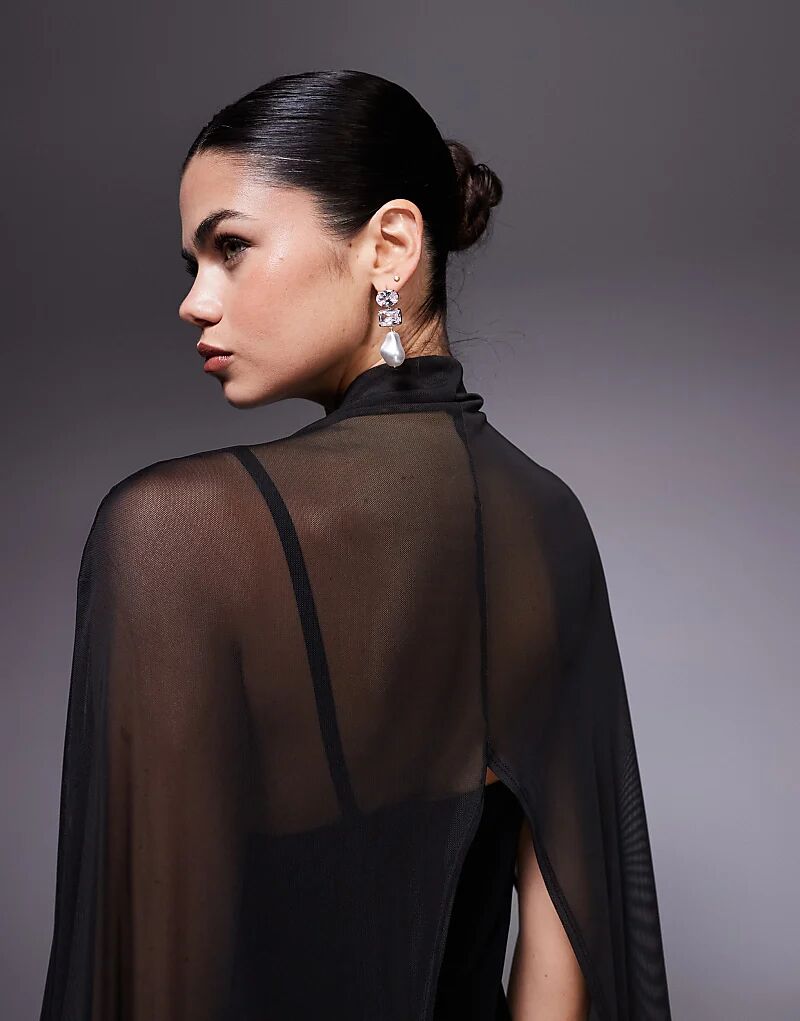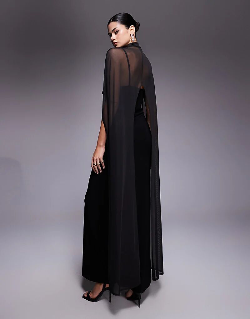Платье макси ASOS DESIGN с увеличенным кейпом черного цвета