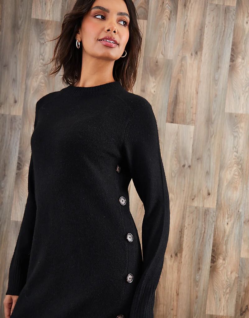 Платье макси с пуговицами по бокам, черного цвета