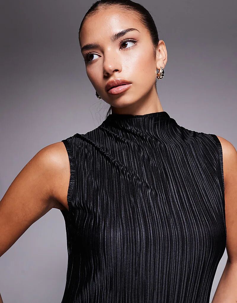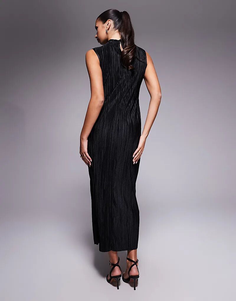 Платье миди ASOS DESIGN с ребристым вырезом на шее, черное