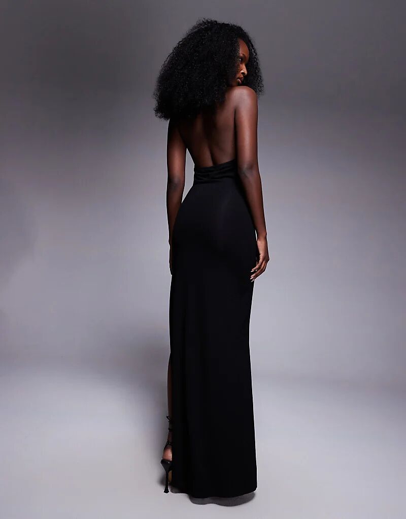 Платье макси ASOS DESIGN с глубокими разрезами на бедрах, черное
