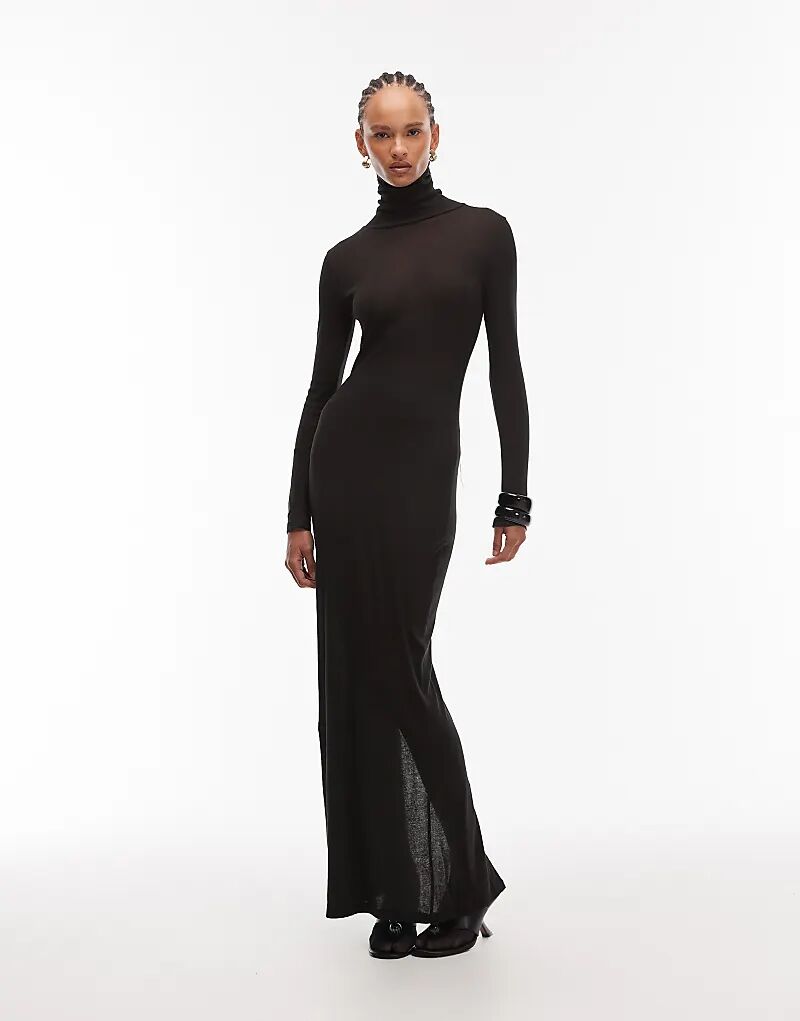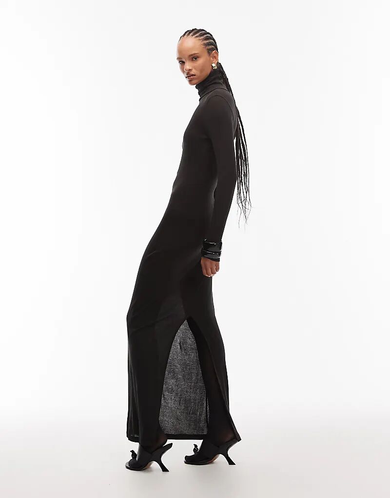 Платье макси с высоким воротником ASOS DESIGN черного цвета