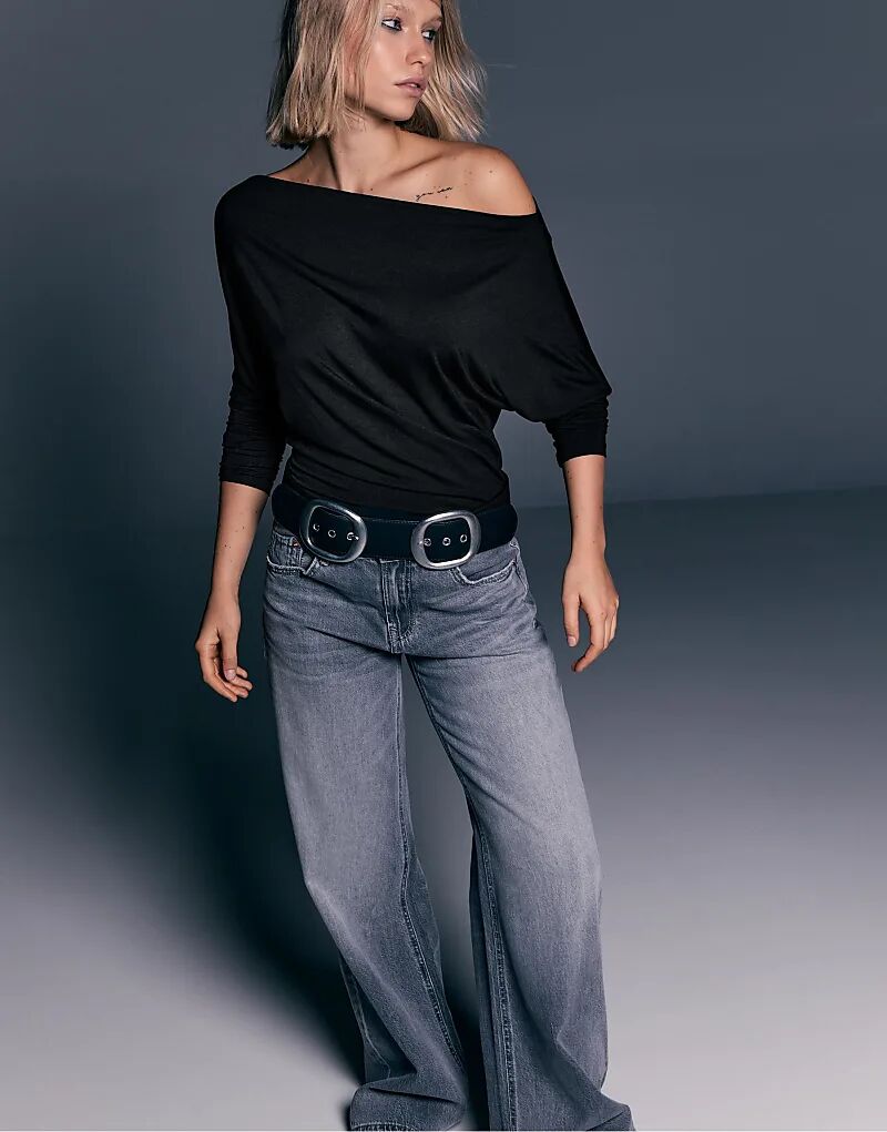 Футболка Stradivarius Asymmetric из модала черного цвета