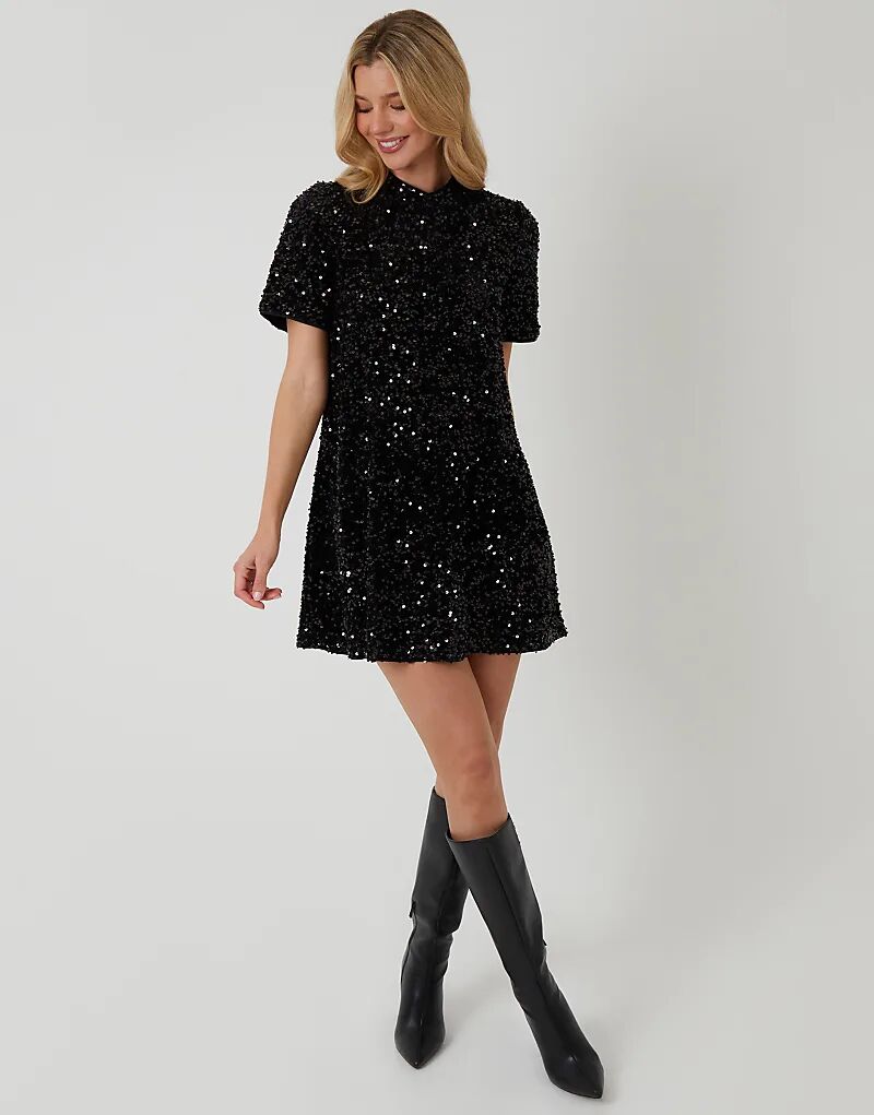 Мини-платье Threadbare с высоким воротом и пайетками, черное