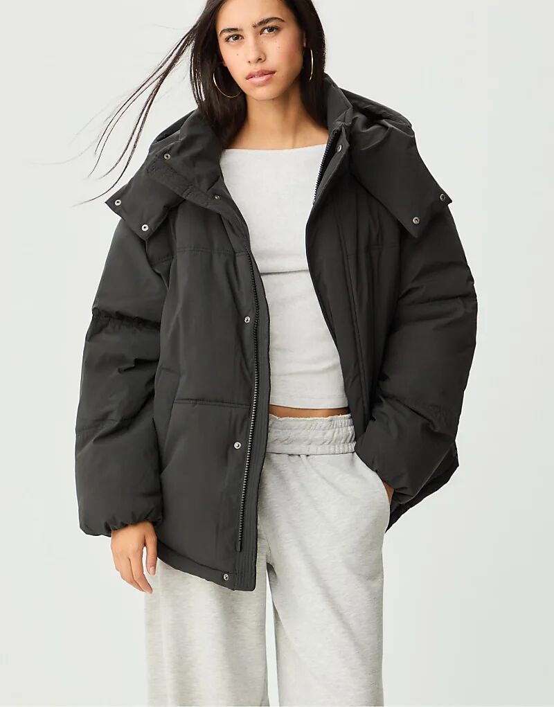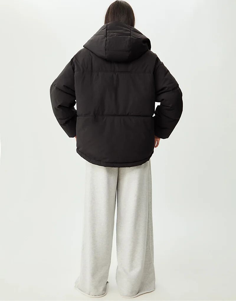 Пуховик Stradivarius Oversize с капюшоном черного цвета