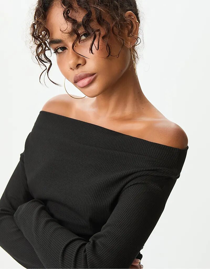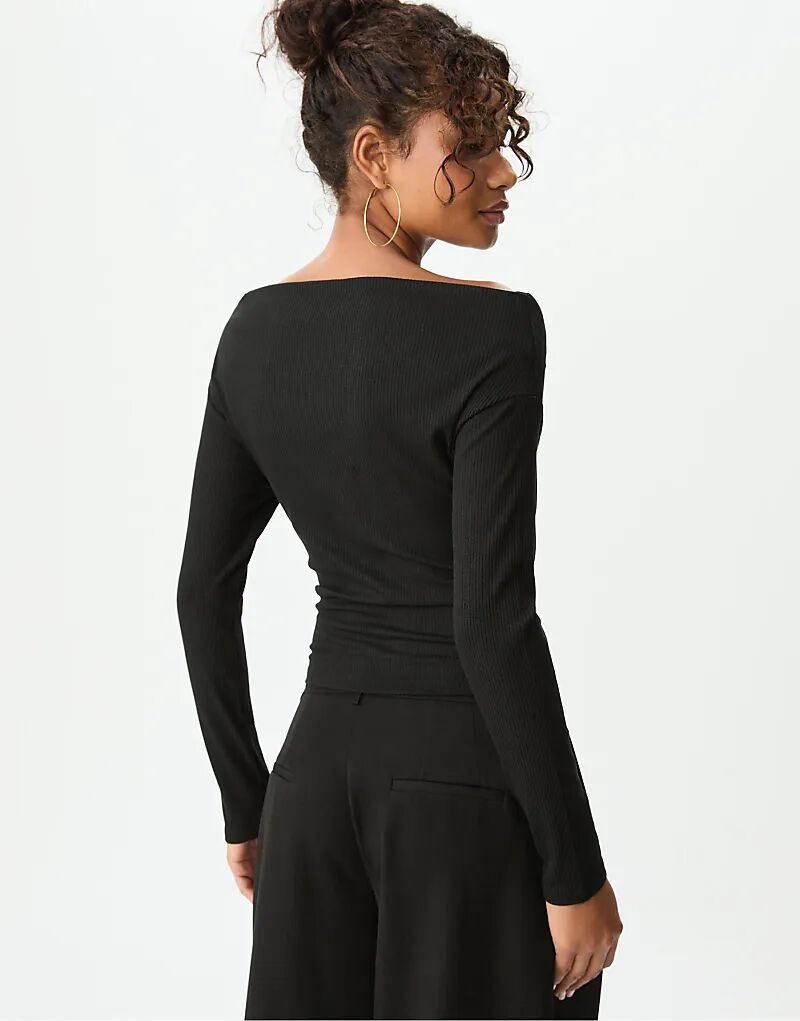 Футболка Stradivarius Boatneck черного цвета