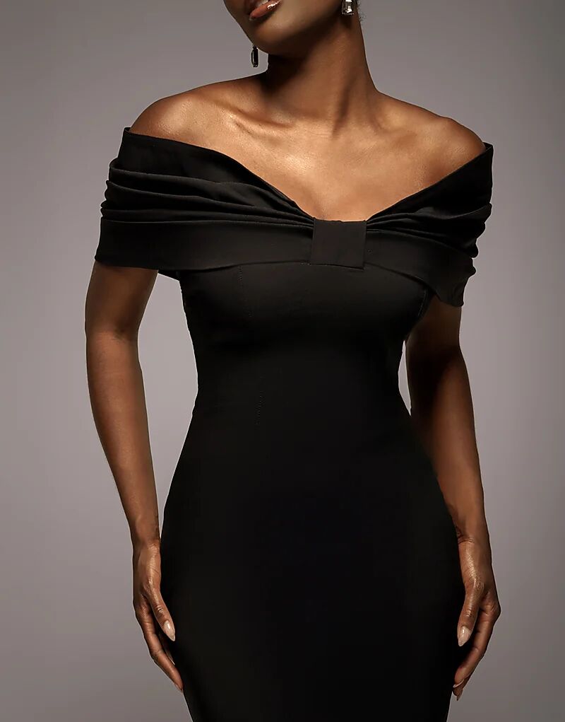 Платье макси Goddiva Bardot с бантом на шее черного цвета