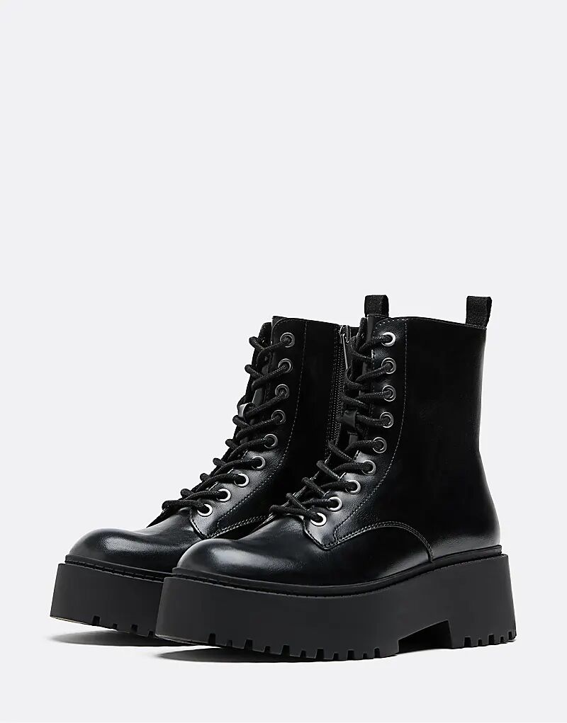 Ботильоны Stradivarius Flat на шнуровке черного цвета