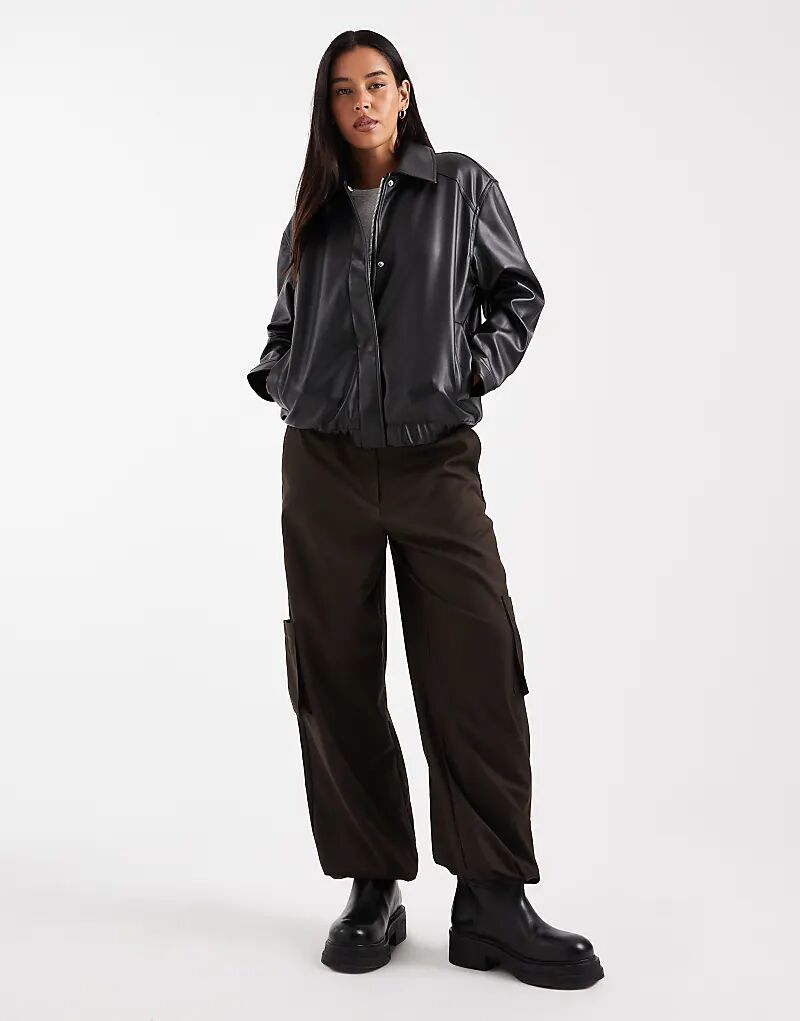 ONLY бомбер из искусственной кожи черного цвета