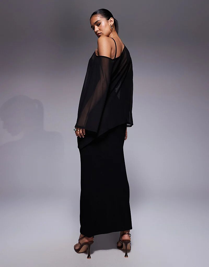 Платье миди с накидкой ASOS DESIGN черного цвета