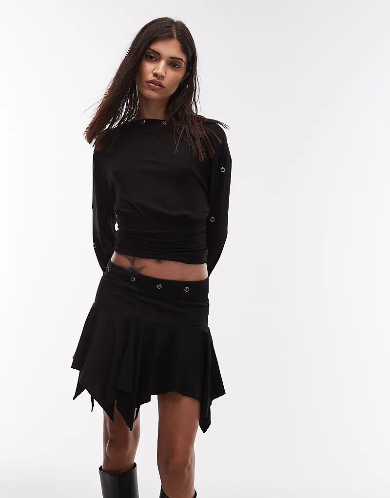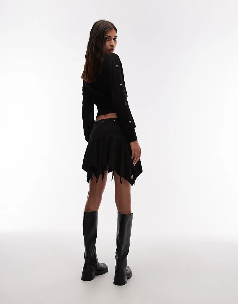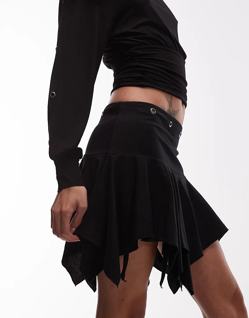 Мини-юбка ASOS DESIGN с люверсами и подолом черного цвета