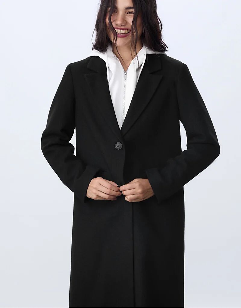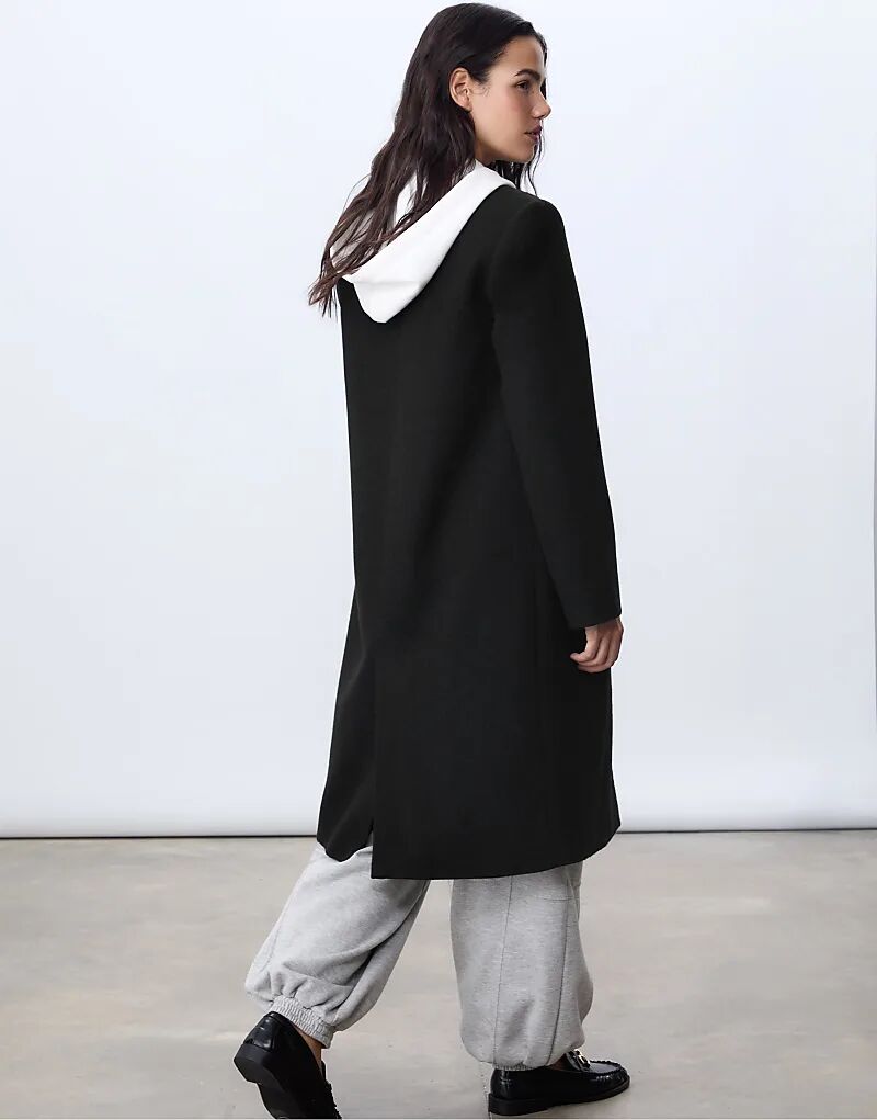 Длинное прямое пальто Stradivarius черного цвета 9 005₽