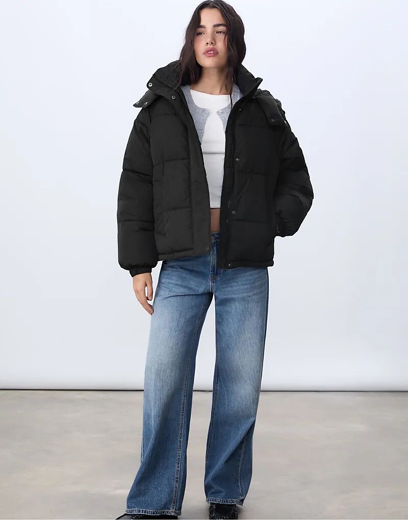 Пуховик Stradivarius с капюшоном черного цвета