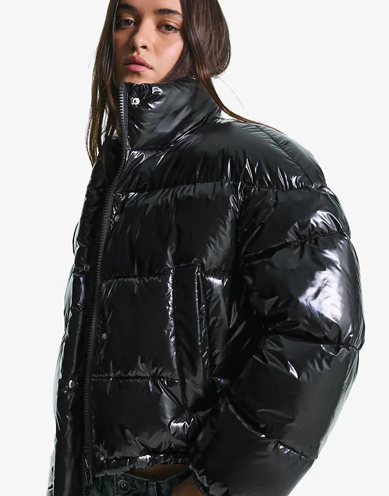 Пуховик Bershka с виниловым эффектом черного цвета 5 345₽