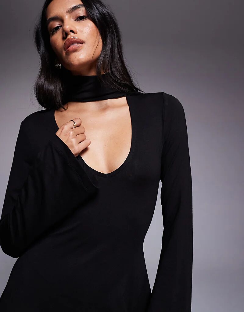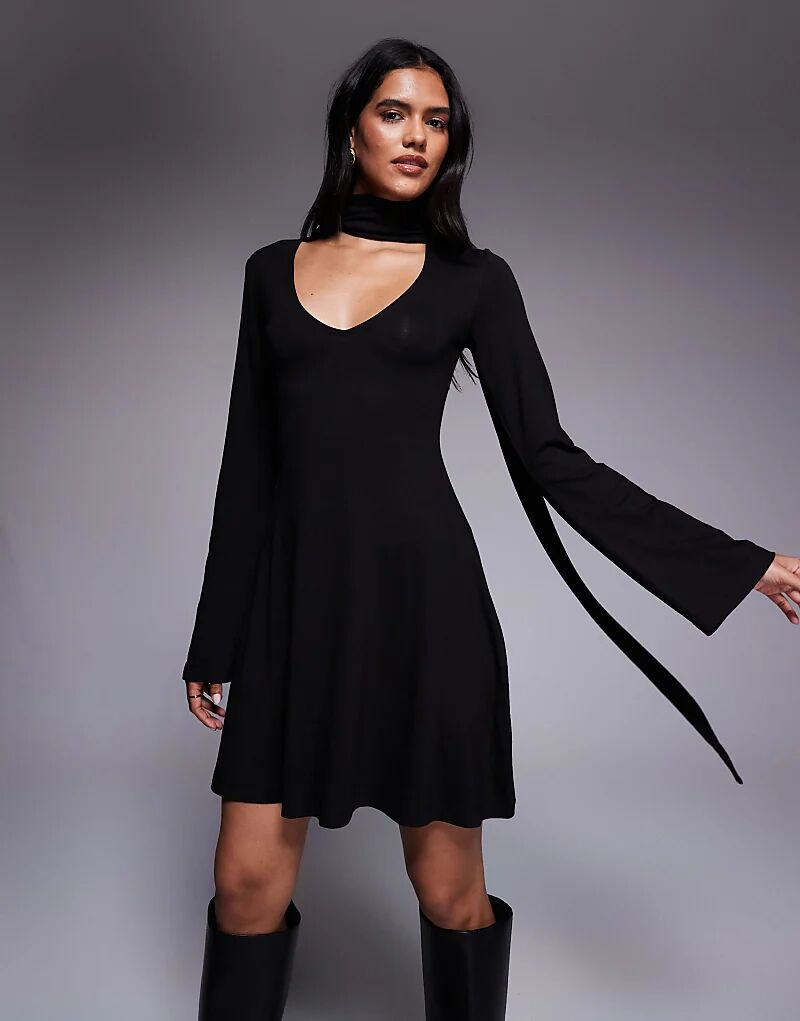 Мини-платье ASOS DESIGN с рукавами-фонариками и шарфом, черное