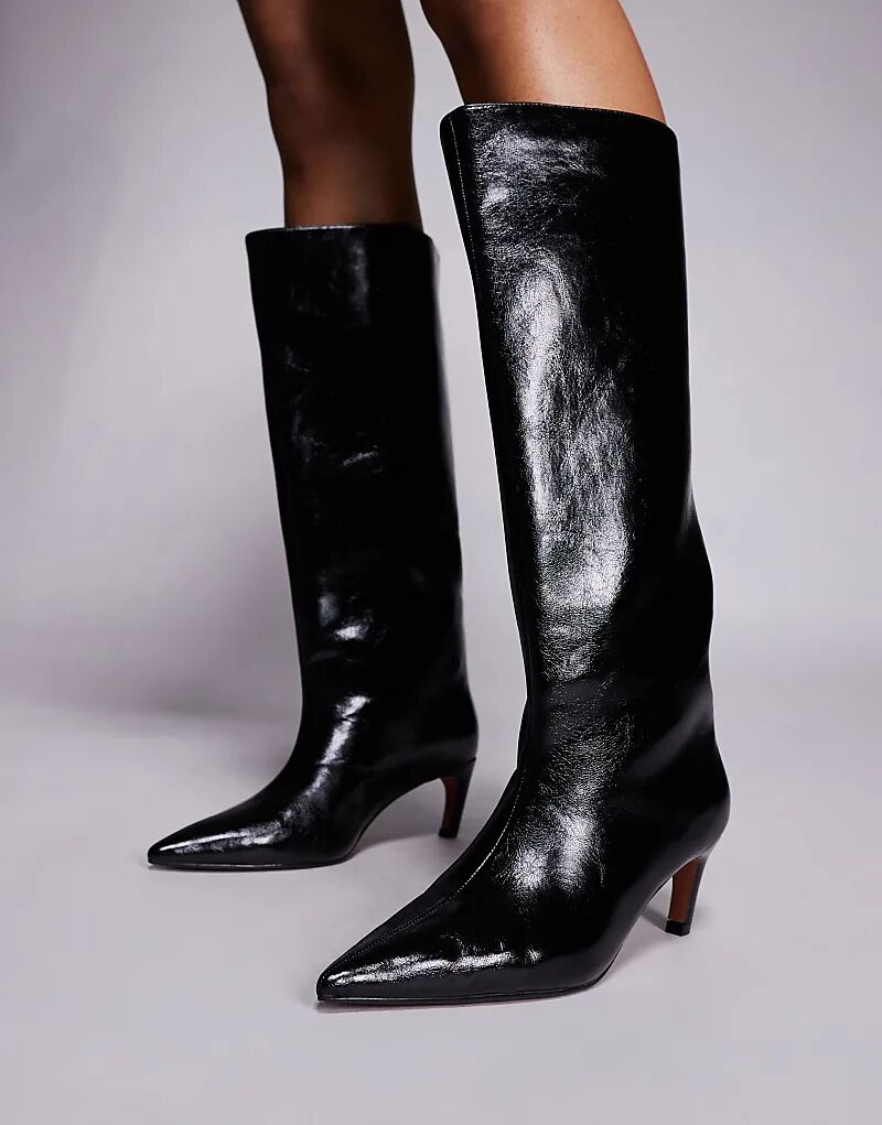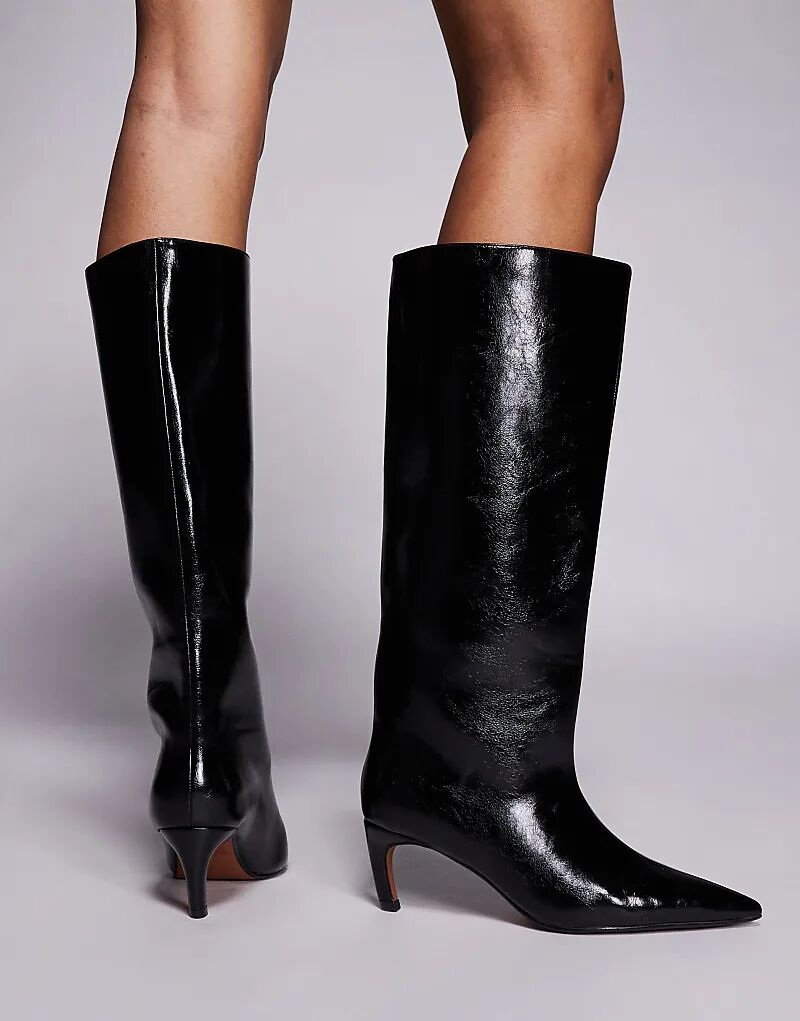 Сапоги River Island на каблуке-рюмочке, черные, до колена