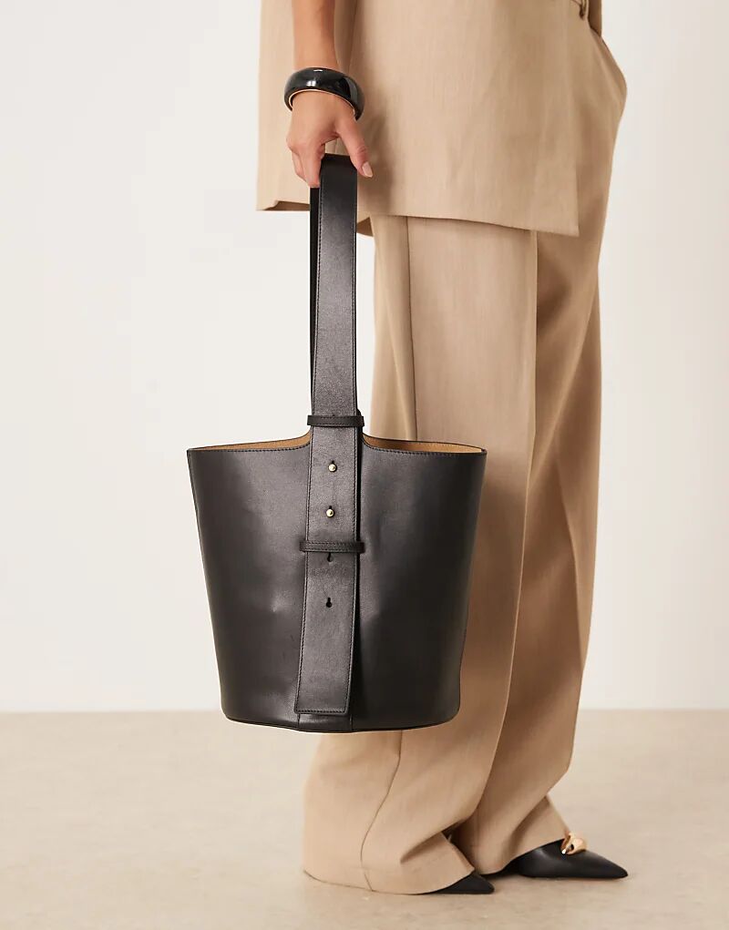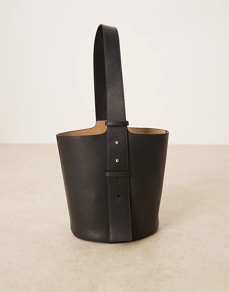 Сумка-ведро Mango из 100% кожи черного цвета 19 381₽