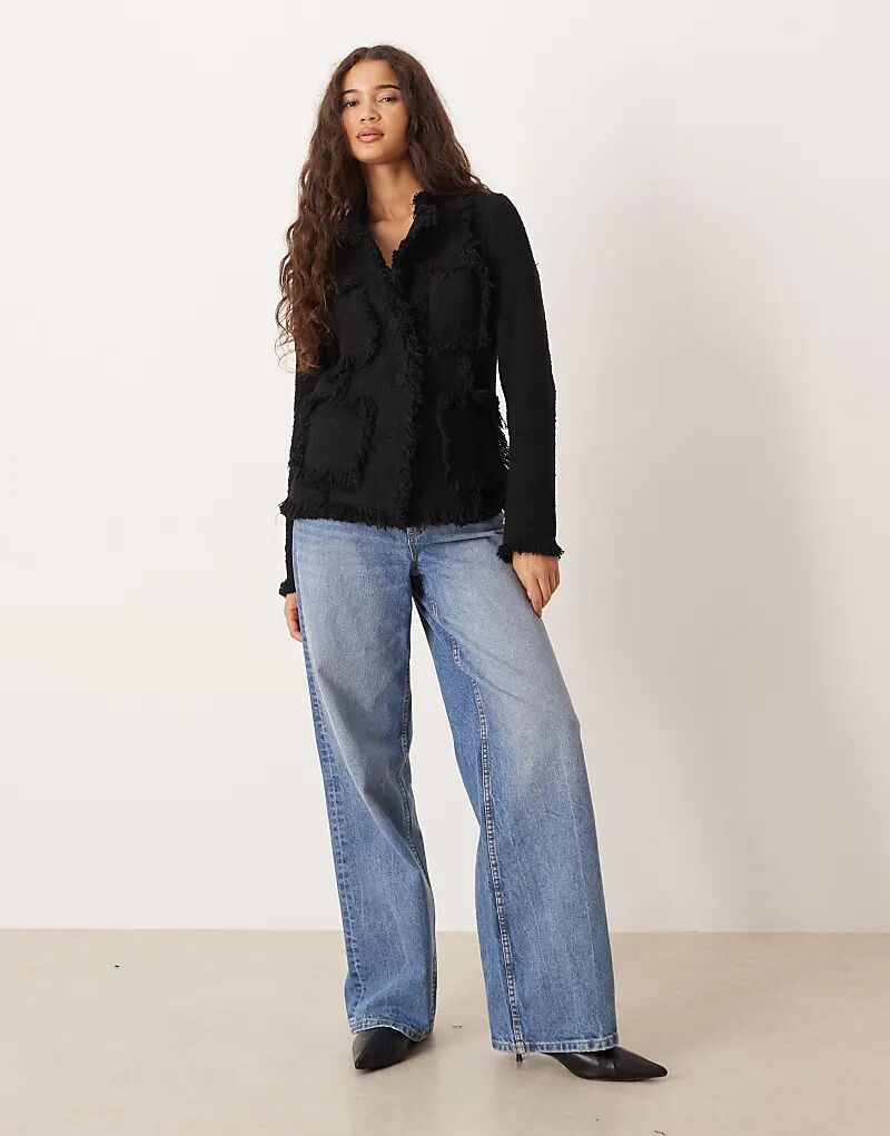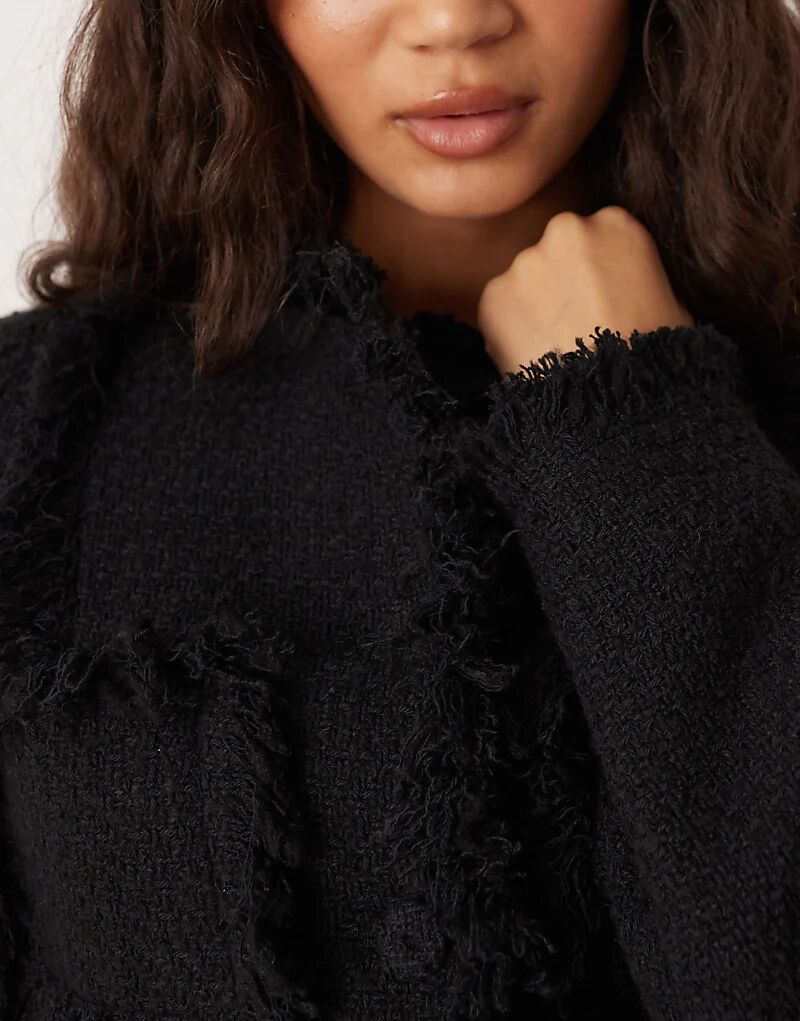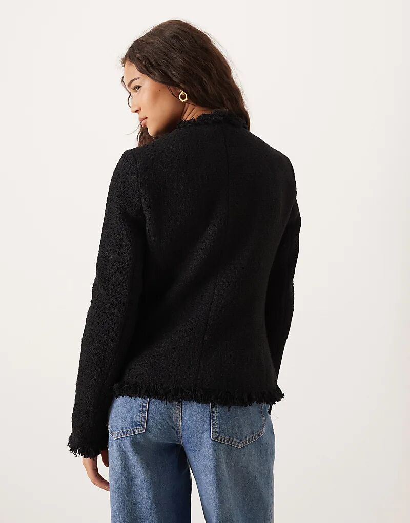 Жакет Mango из ткани букле с бахромой черного цвета 13 882₽