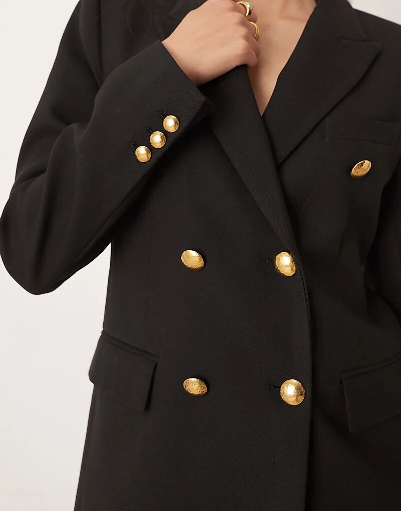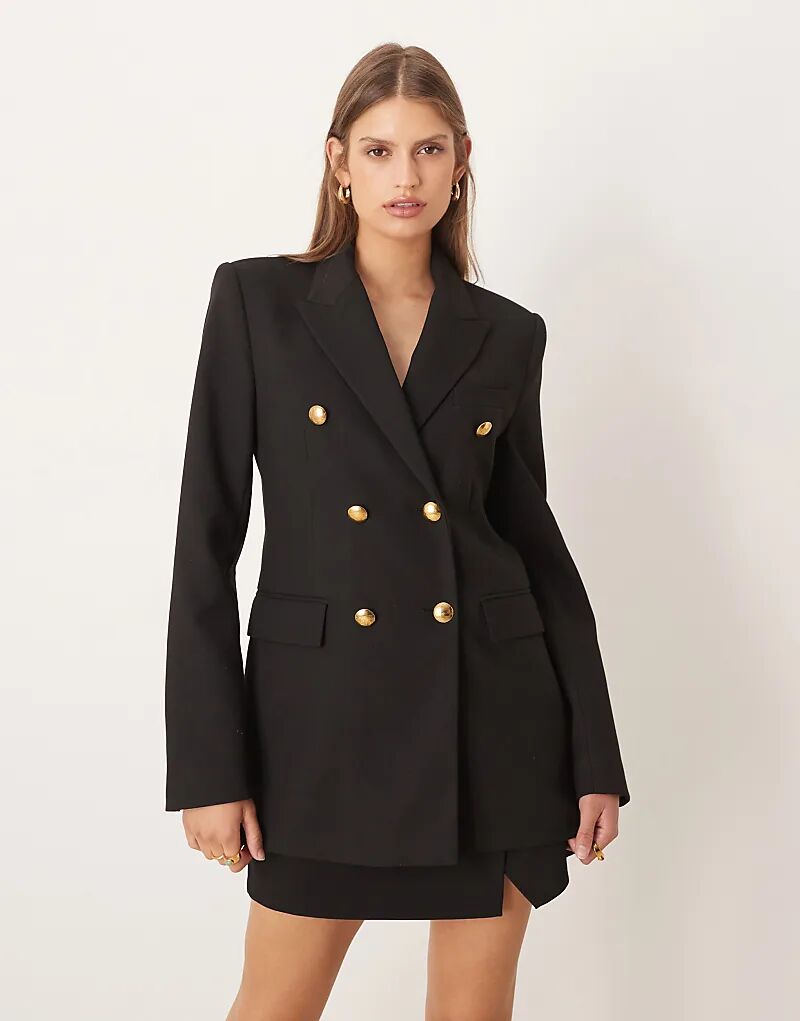 Двубортный пиджак Mango строгого кроя черного цвета