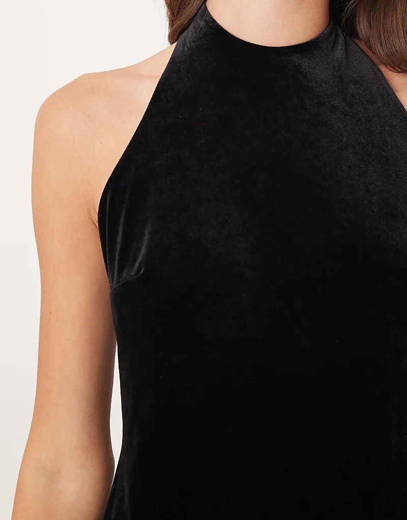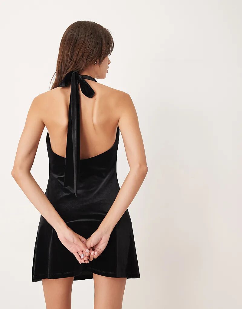 Бархатное мини-платье с халтер-воротником Nobody's Child черного цвета
