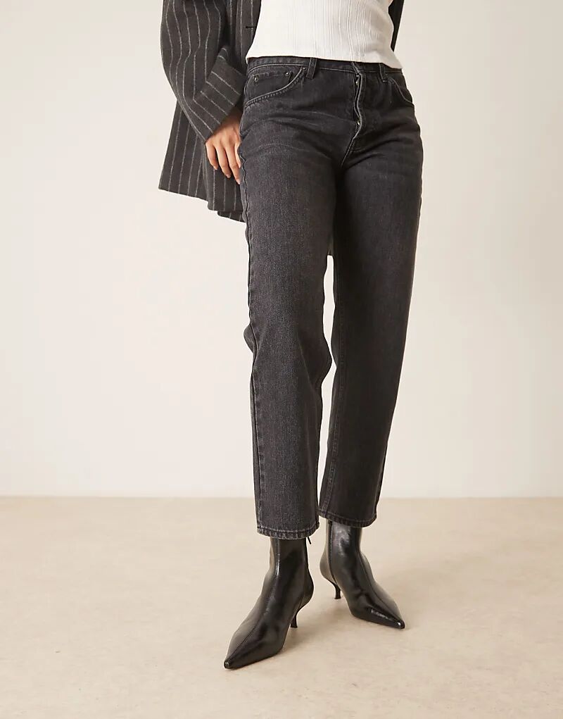 Ботильоны Mango на каблуке-рюмочке с острым носком, черного цвета