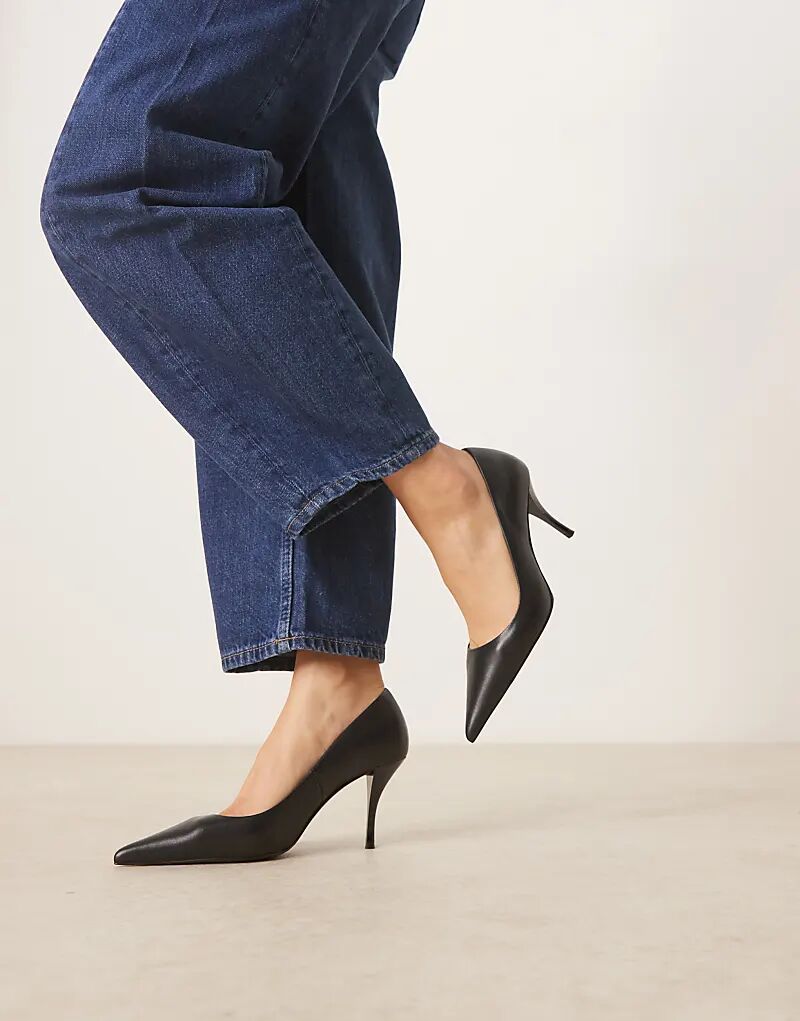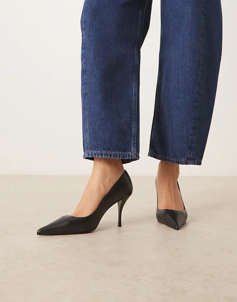 Туфли на остром каблуке из кожи Mango черного цвета
