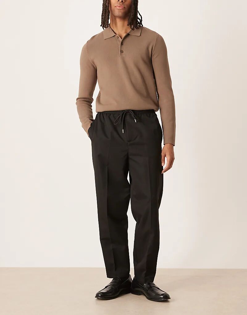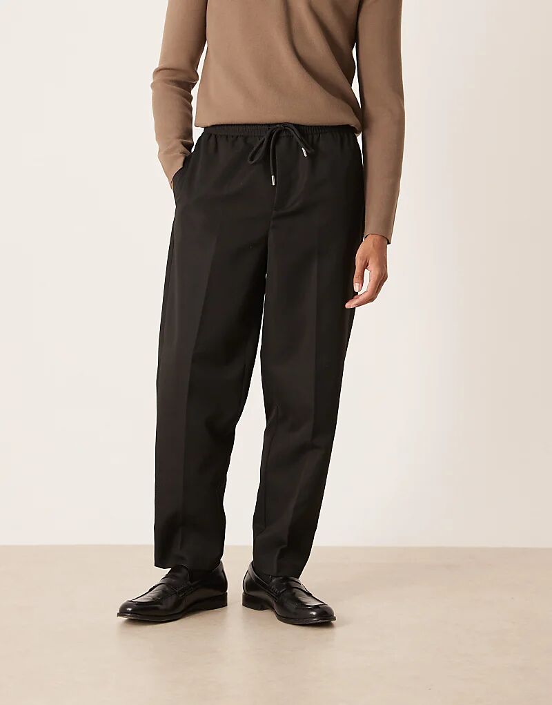 Брюки-карроты ASOS DESIGN с эластичным поясом черного цвета