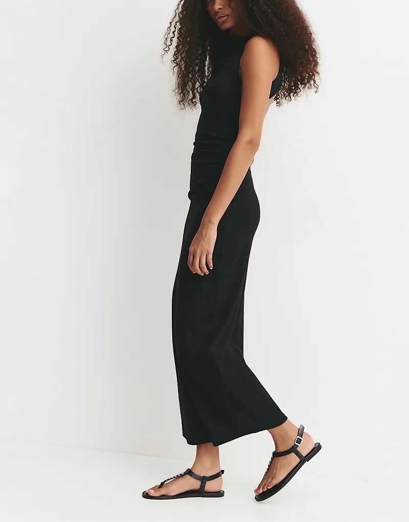 Платье миди с открытой спиной Pull&Bear черного цвета