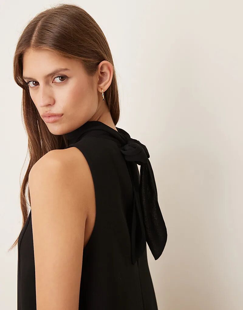 Платье-мини с бантом и вырезом халтер Mango черного цвета