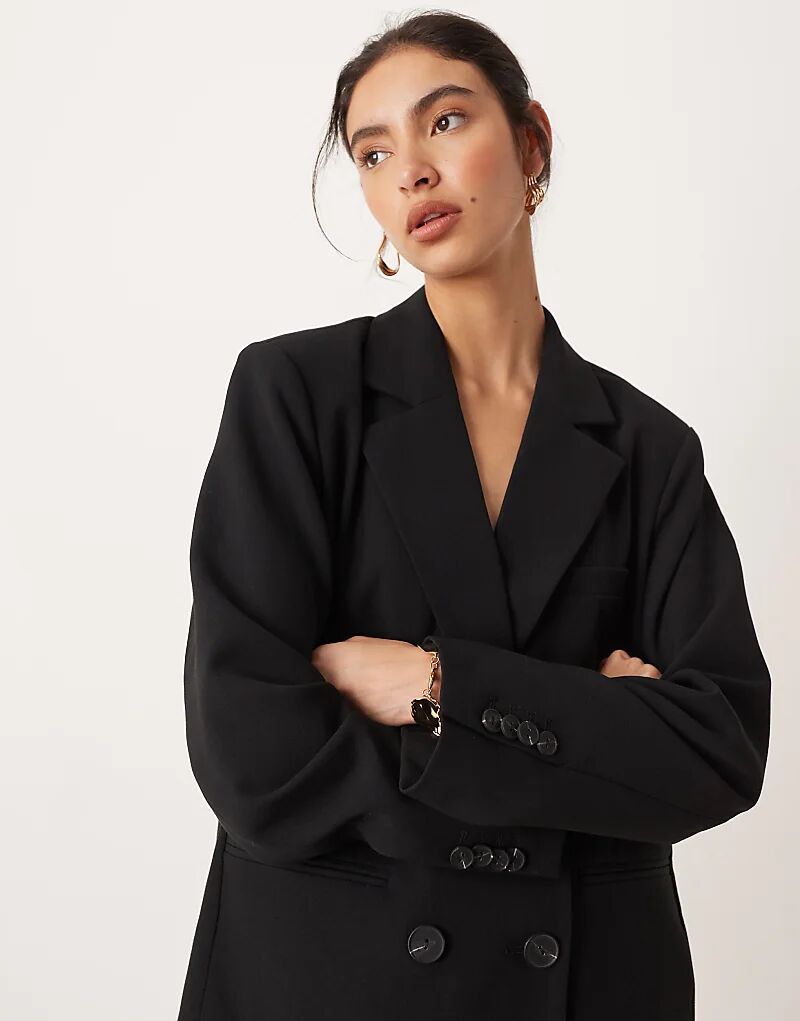 Двубортный пиджак YAS, приталенный в черном цвете 14 633₽