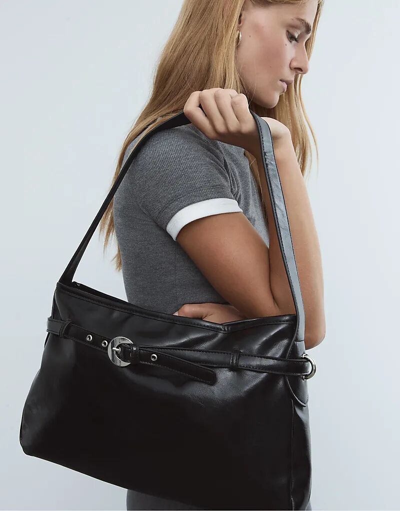 Сумка Stradivarius через плечо с ремнем черного цвета