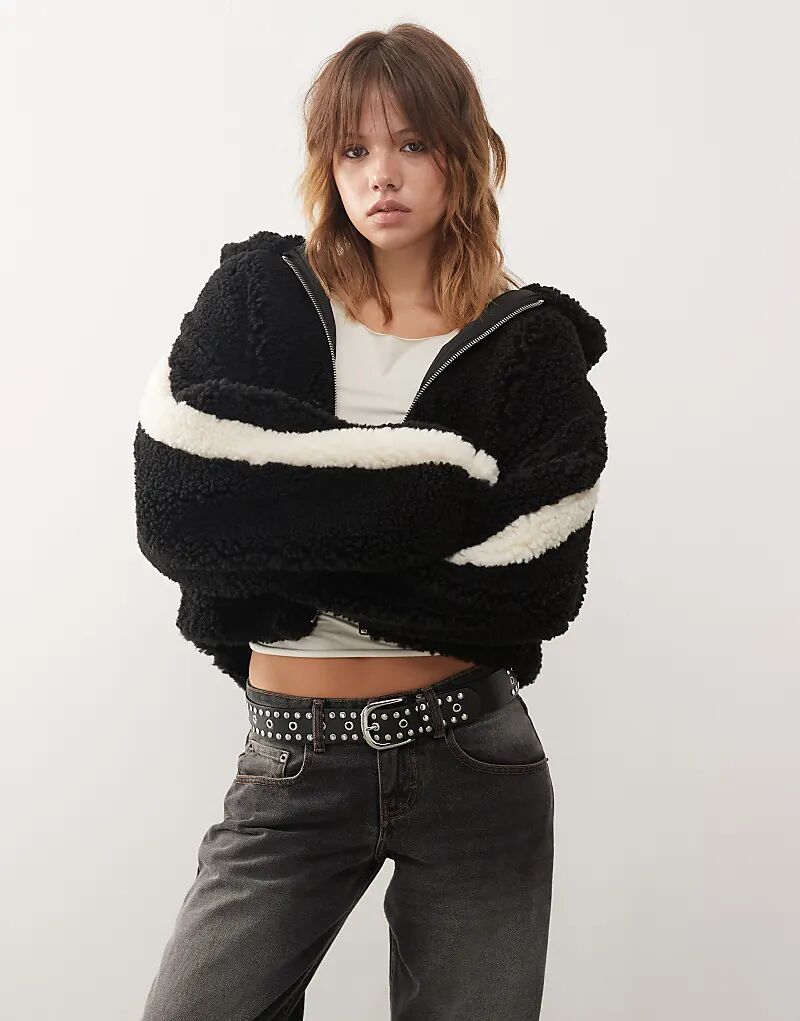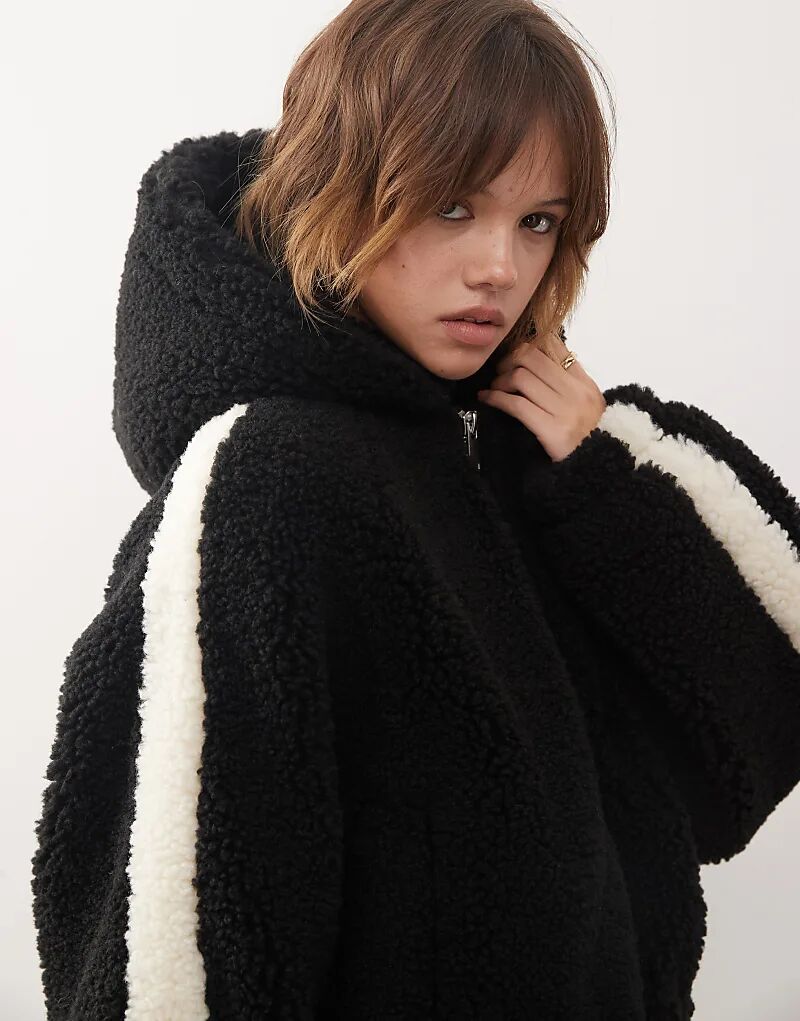 Черная куртка-мешок Monki с капюшоном и застежкой-молнией