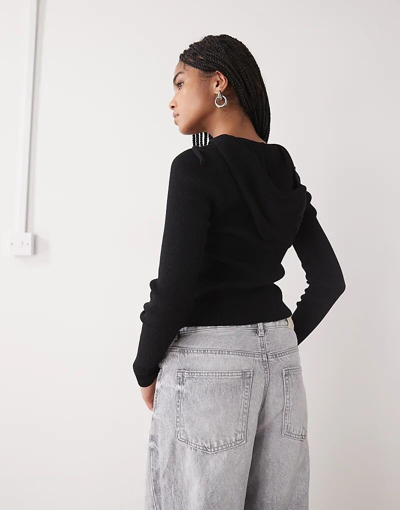 Вязаный кардиган с капюшоном на молнии Monki черного цвета