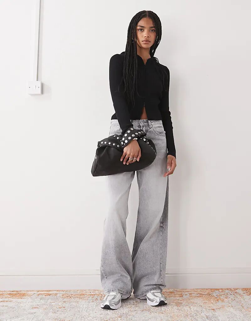 Вязаный кардиган с капюшоном на молнии Monki черного цвета 4 856₽