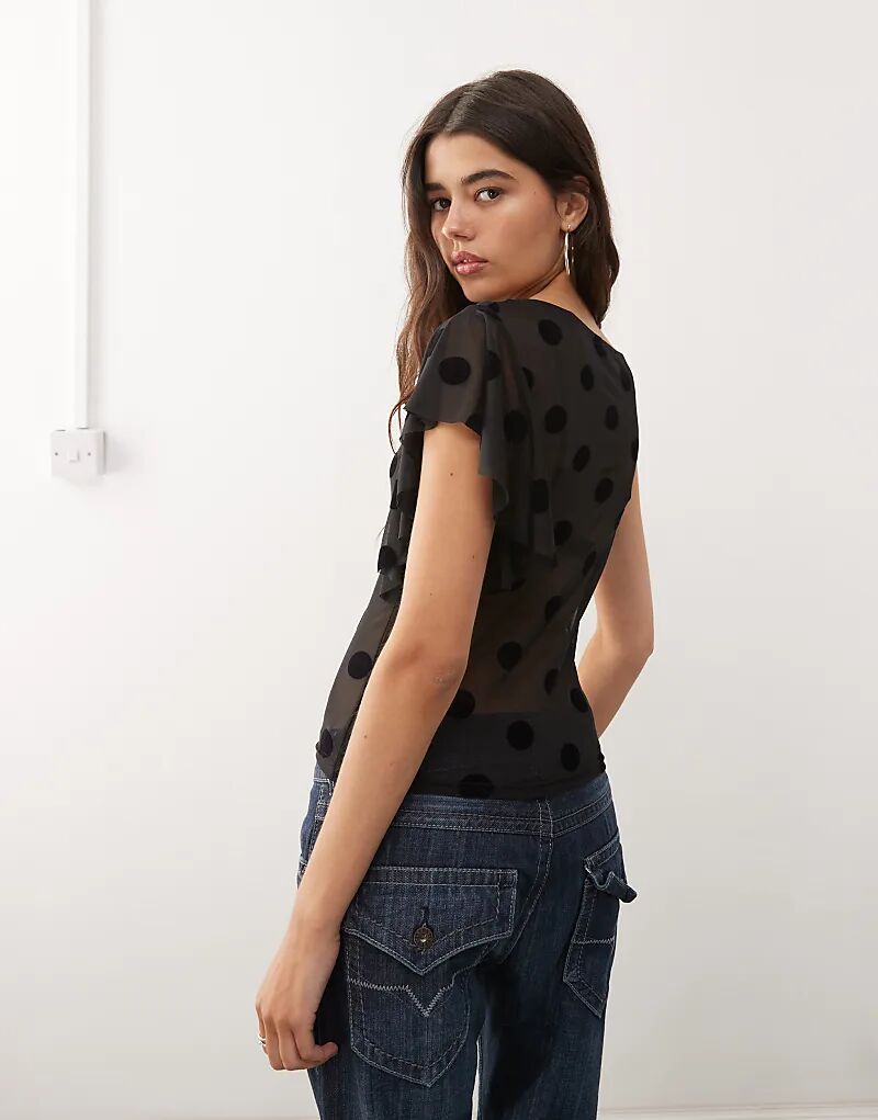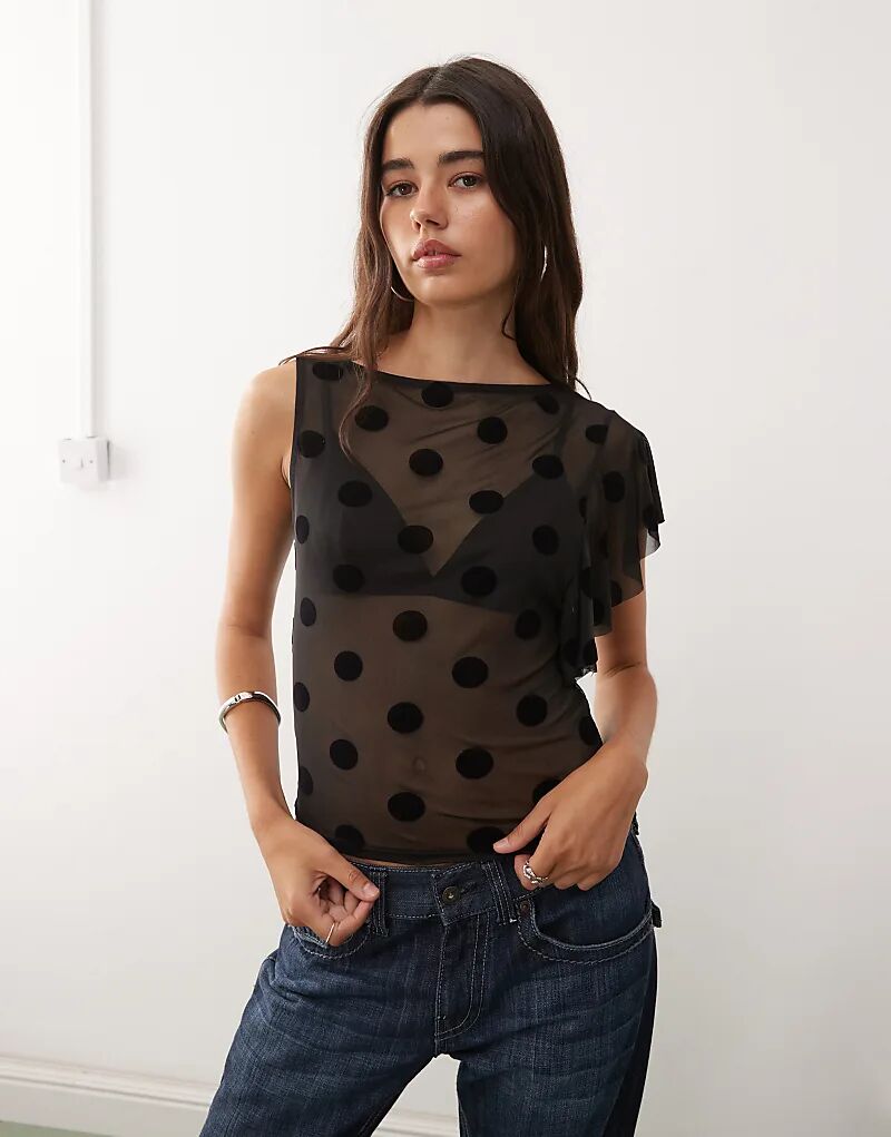 Топ-сетка COLLUSION с одним рукавом в черный горошек